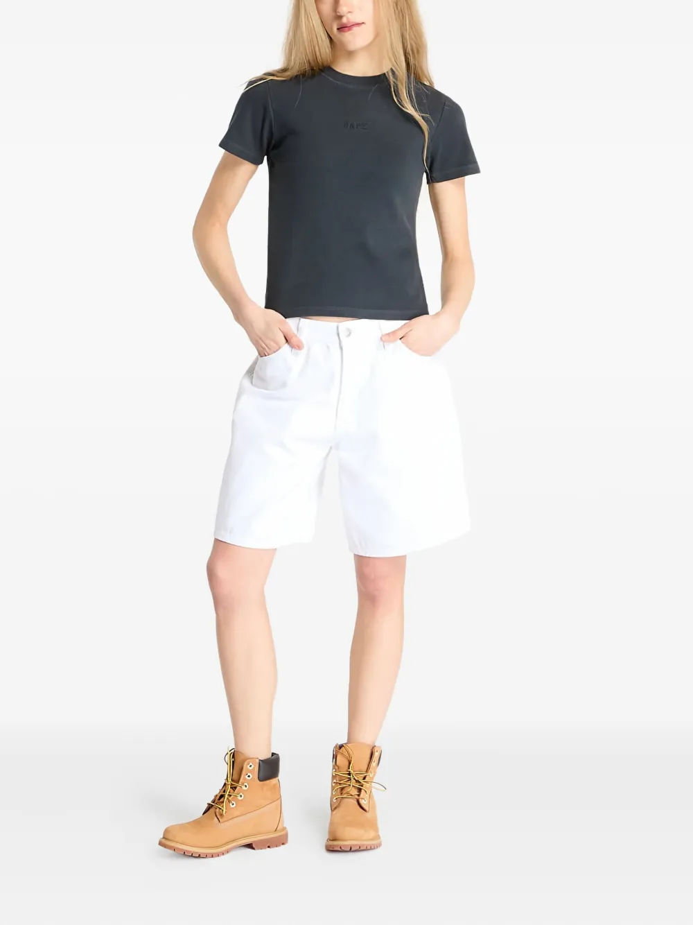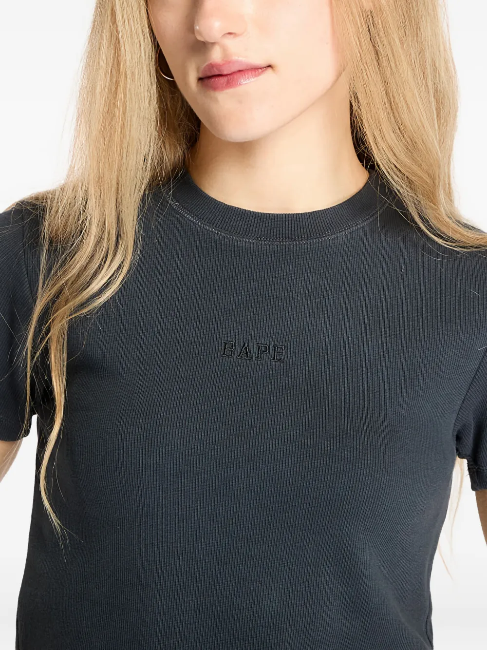 Черная рубчатая текстура, короткие рукава, круглый вырез горловины, вышитый логотип.