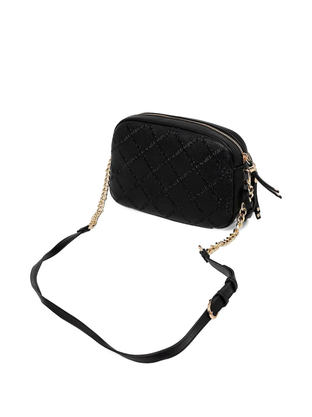 Черный тисненый логотип, регулируемый съемный ремешок, застежка-молния сверху, основное отделение, фурнитура золотистого цвета