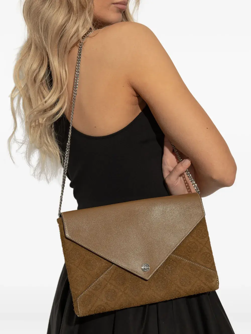 Клатч с логотипом и монограммой Tory Burch, коричневый