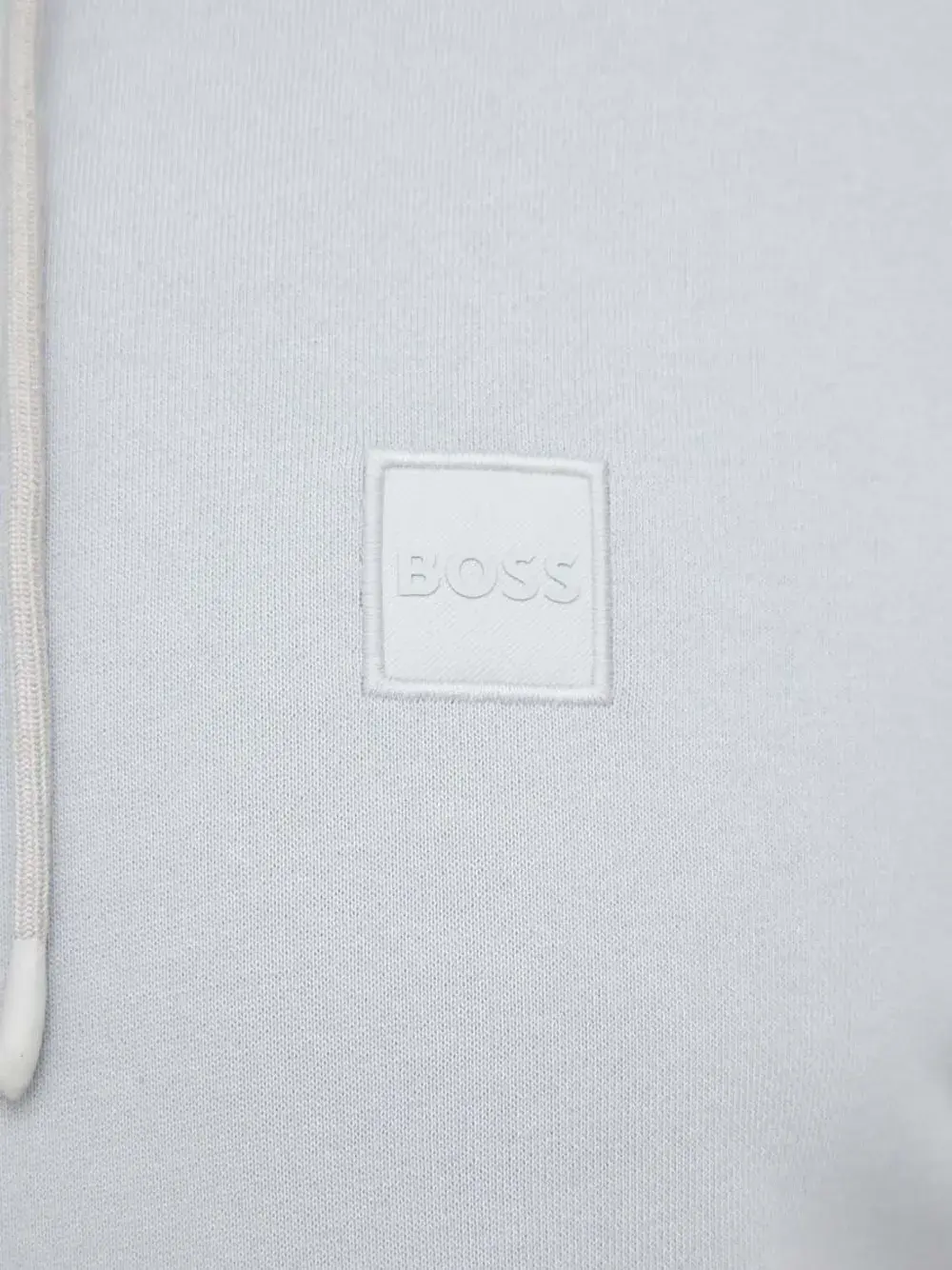 Светло-серый капюшон, длинные рукава, нашивка с логотипом