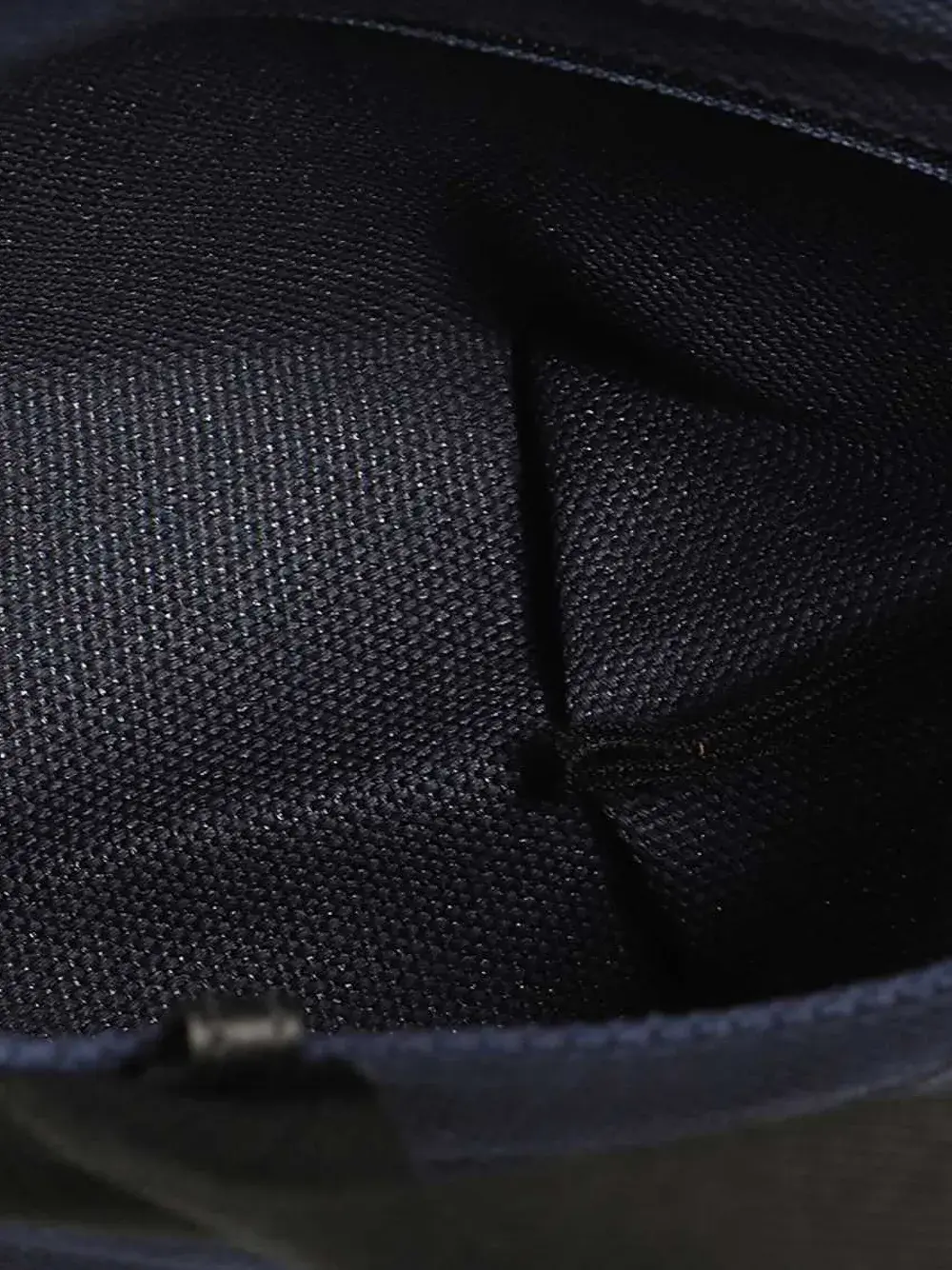 Основное отделение темно-синего цвета с двумя ручками сверху, нашивкой-логотипом и двухцветным дизайном