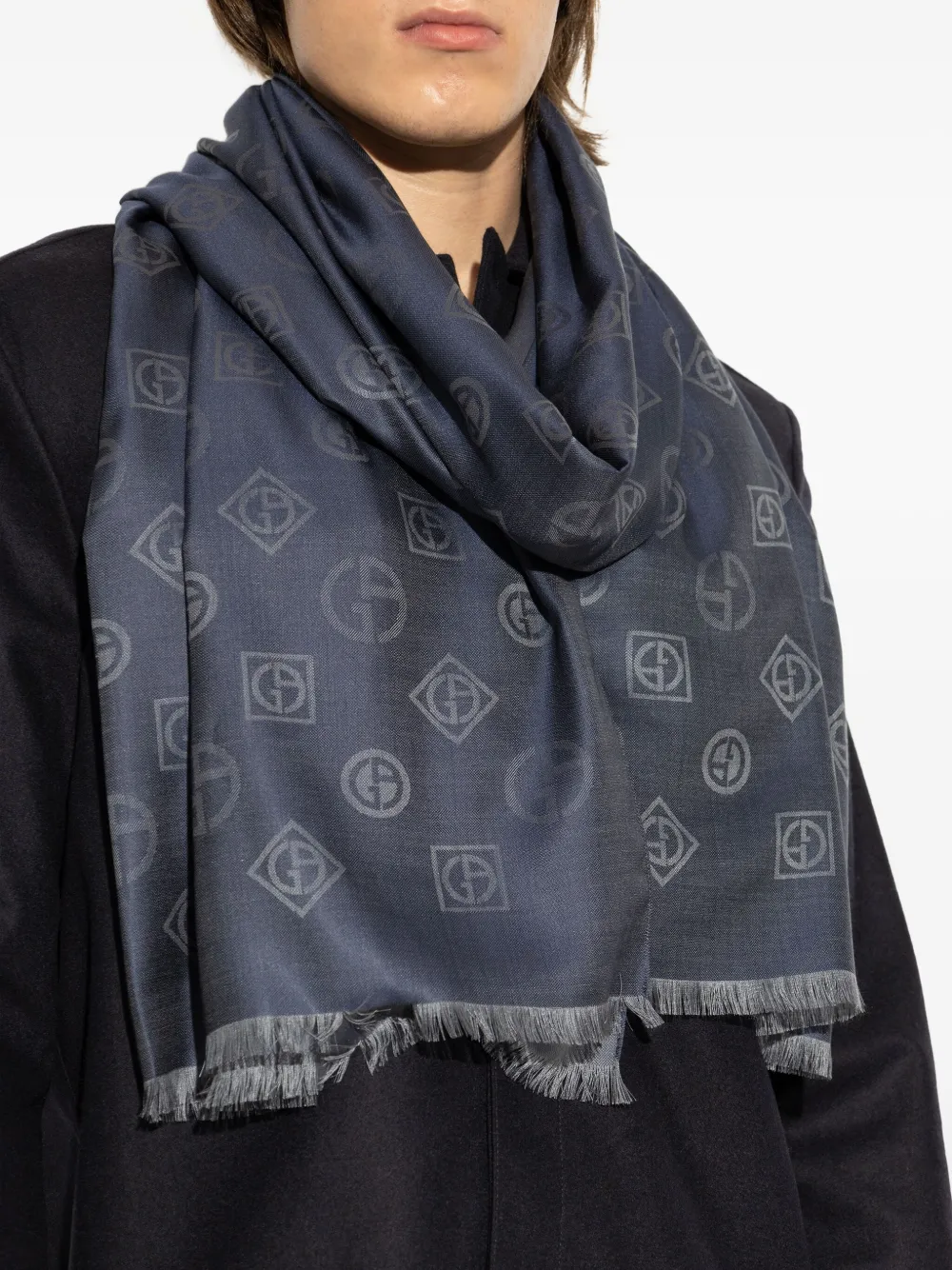Жаккардовый шарф с логотипом GIORGIO ARMANI, синий