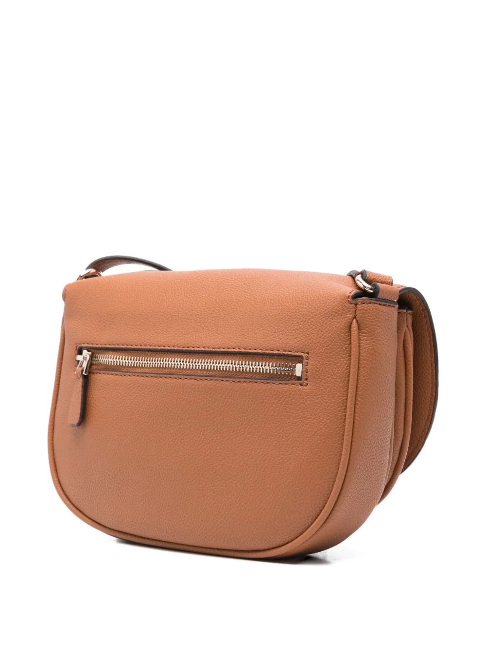 Коричневый тисненый логотип, застежка на клапане, регулируемый ремешок, застежка на молнии, карман изогнутой формы