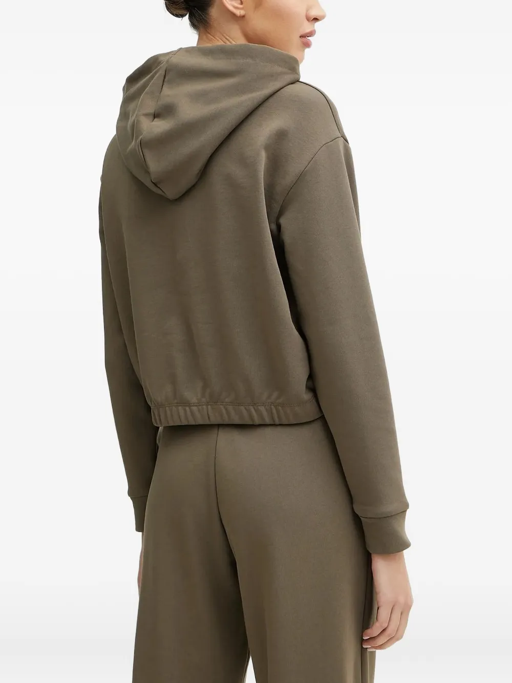 Оливково-зеленый капюшон с логотипом, длинные рукава, эластичный подол