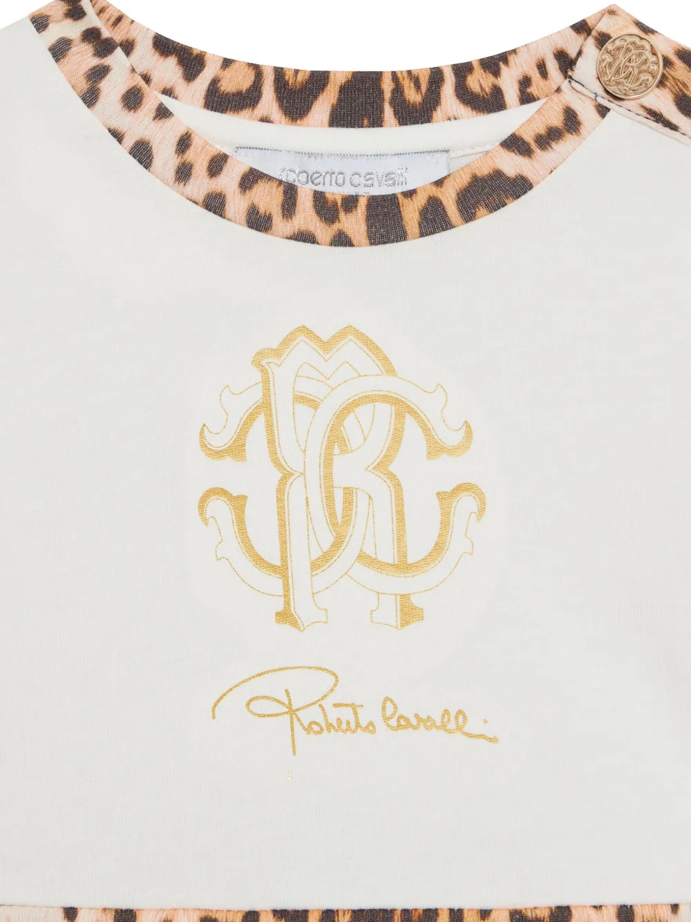 Платье с леопардовым принтом и логотипом Roberto Cavalli, белый