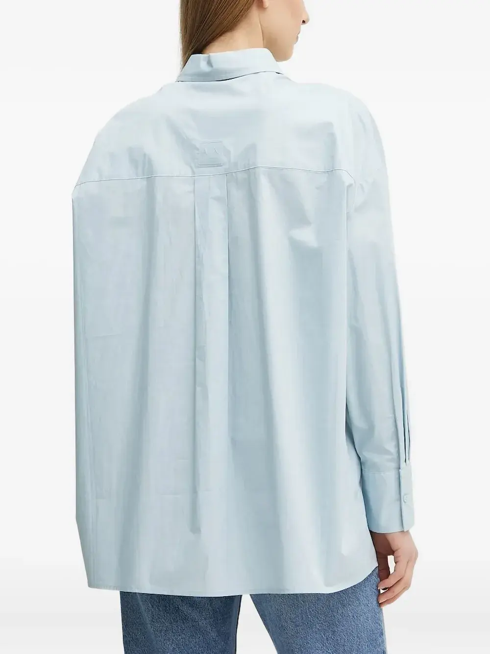 Застежка на пуговицы голубого цвета, длинные рукава, манжеты на пуговицах, бляшка с логотипом.