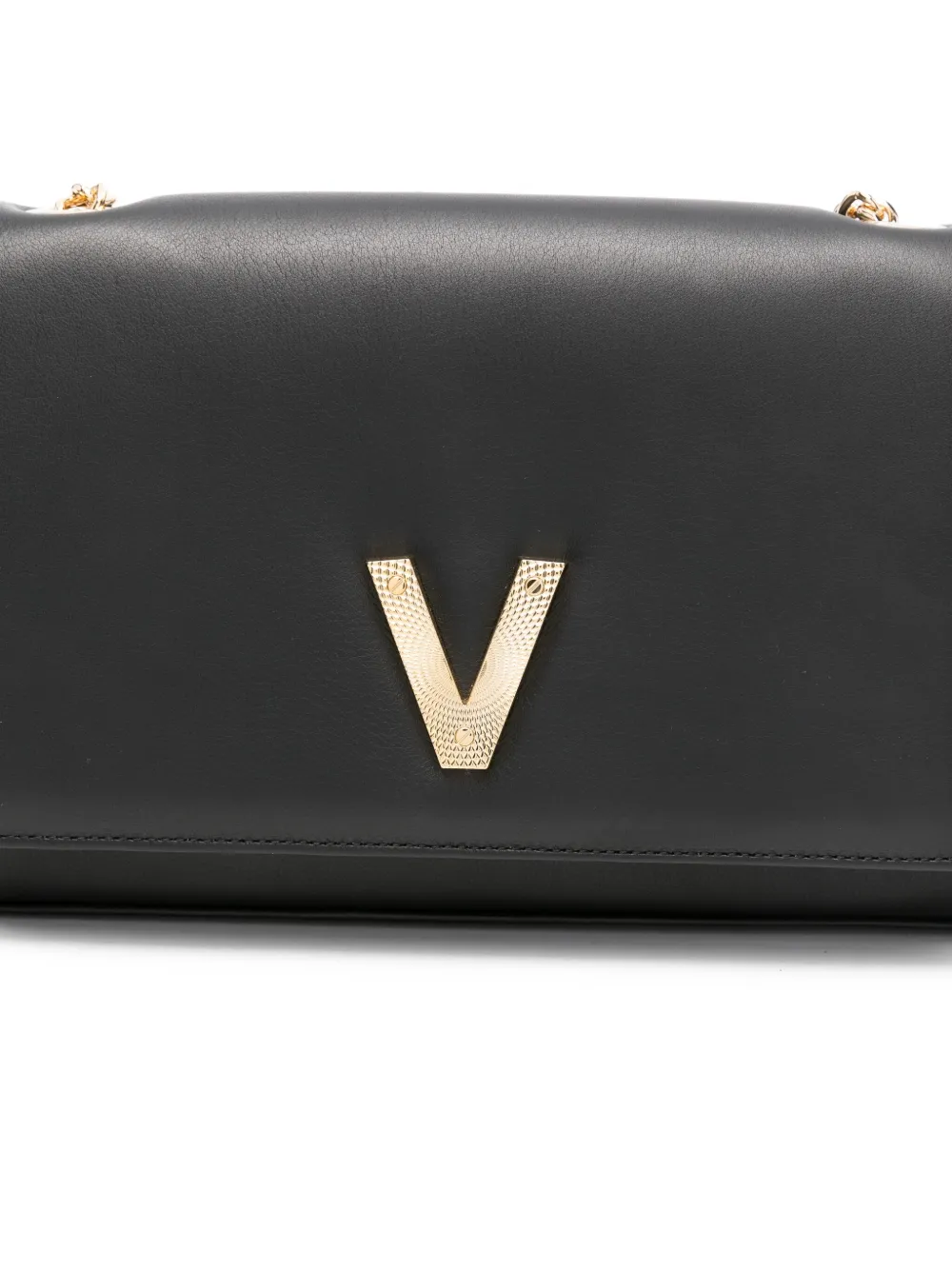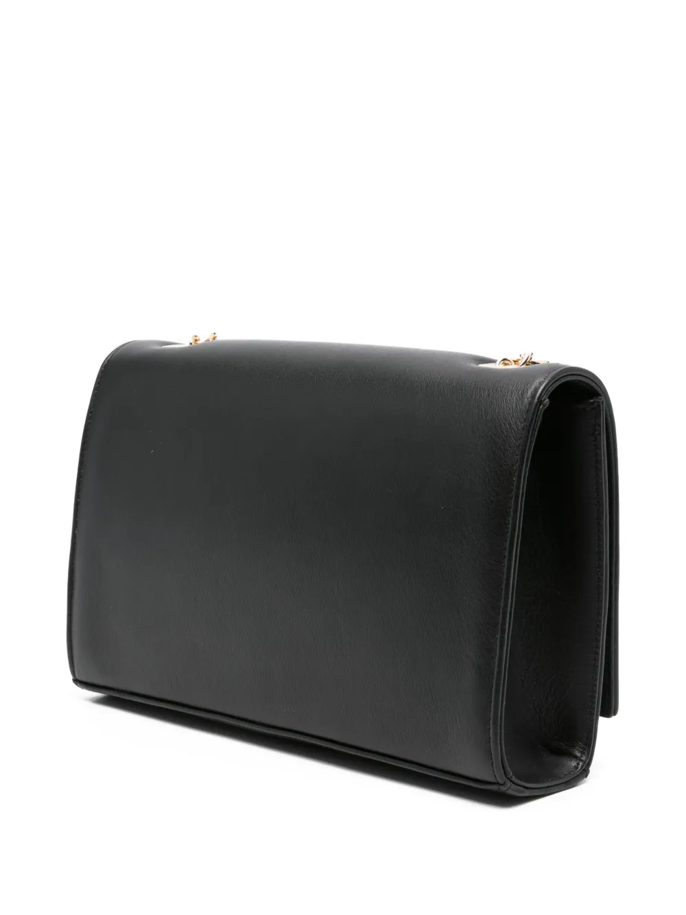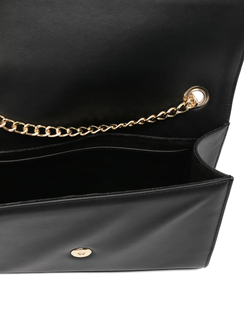 Застежка-клапан с цепочным ремешком из черной телячьей кожи и логотипом