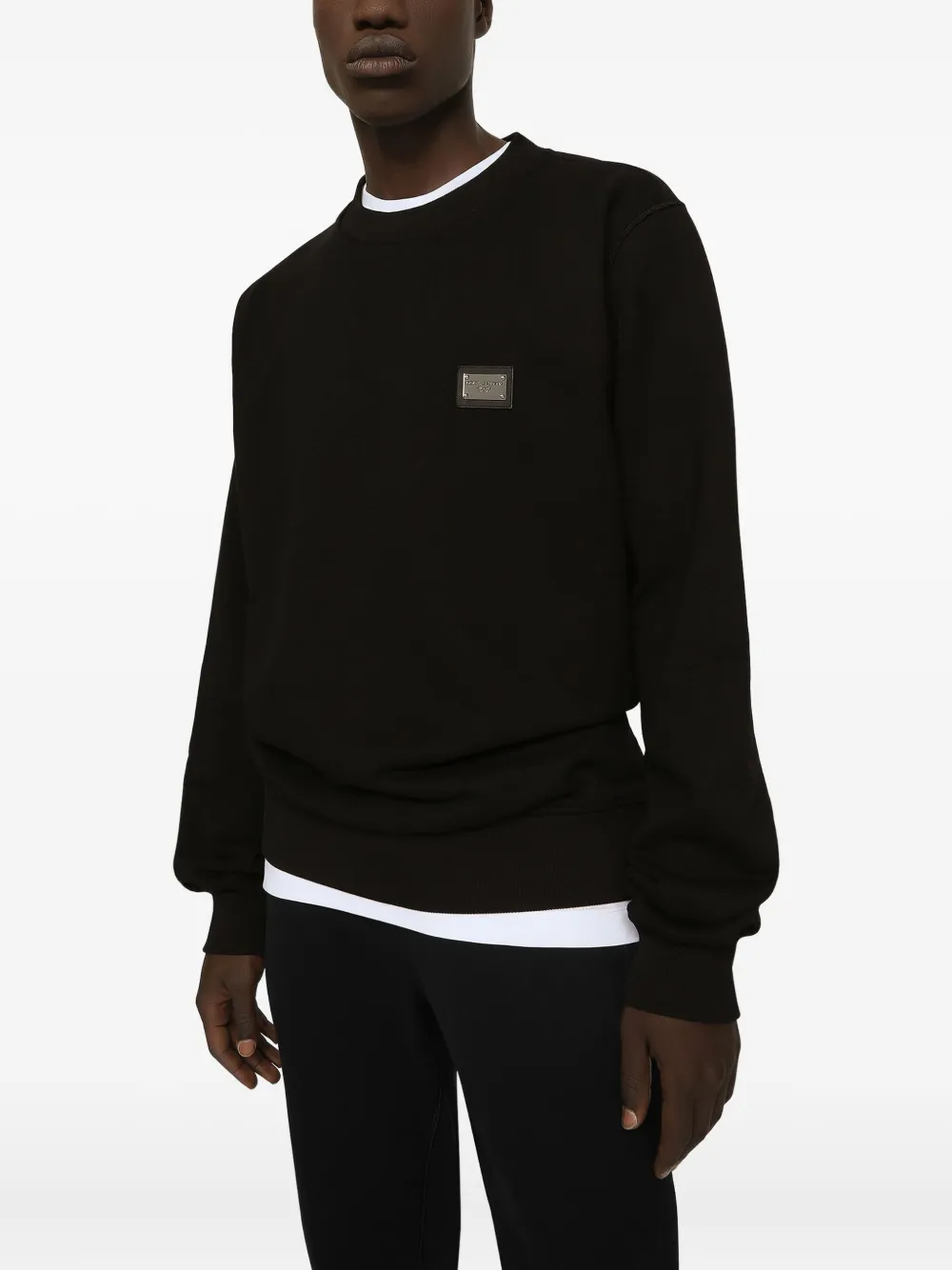 Черная кофточка с круглым вырезом, длинными рукавами и маленькой бляшкой-логотипом из хлопка