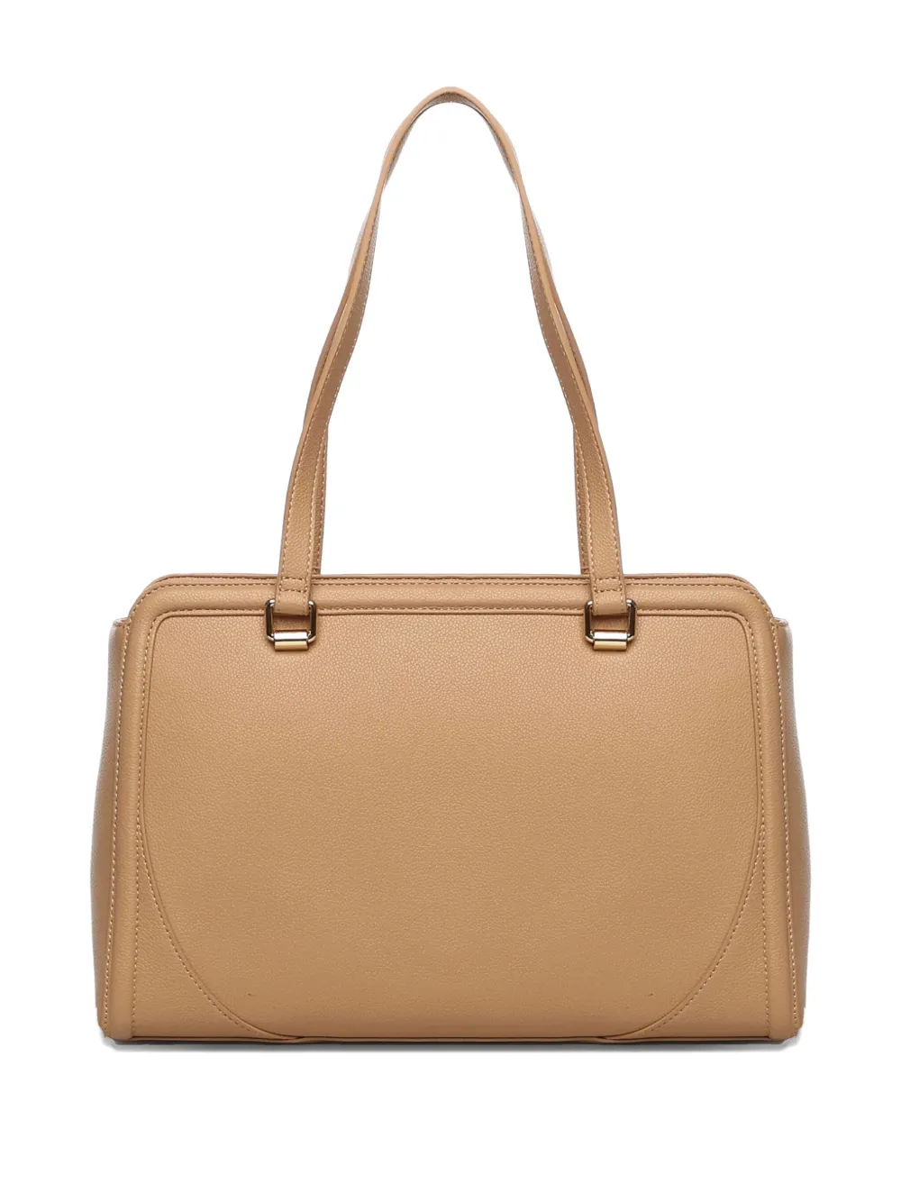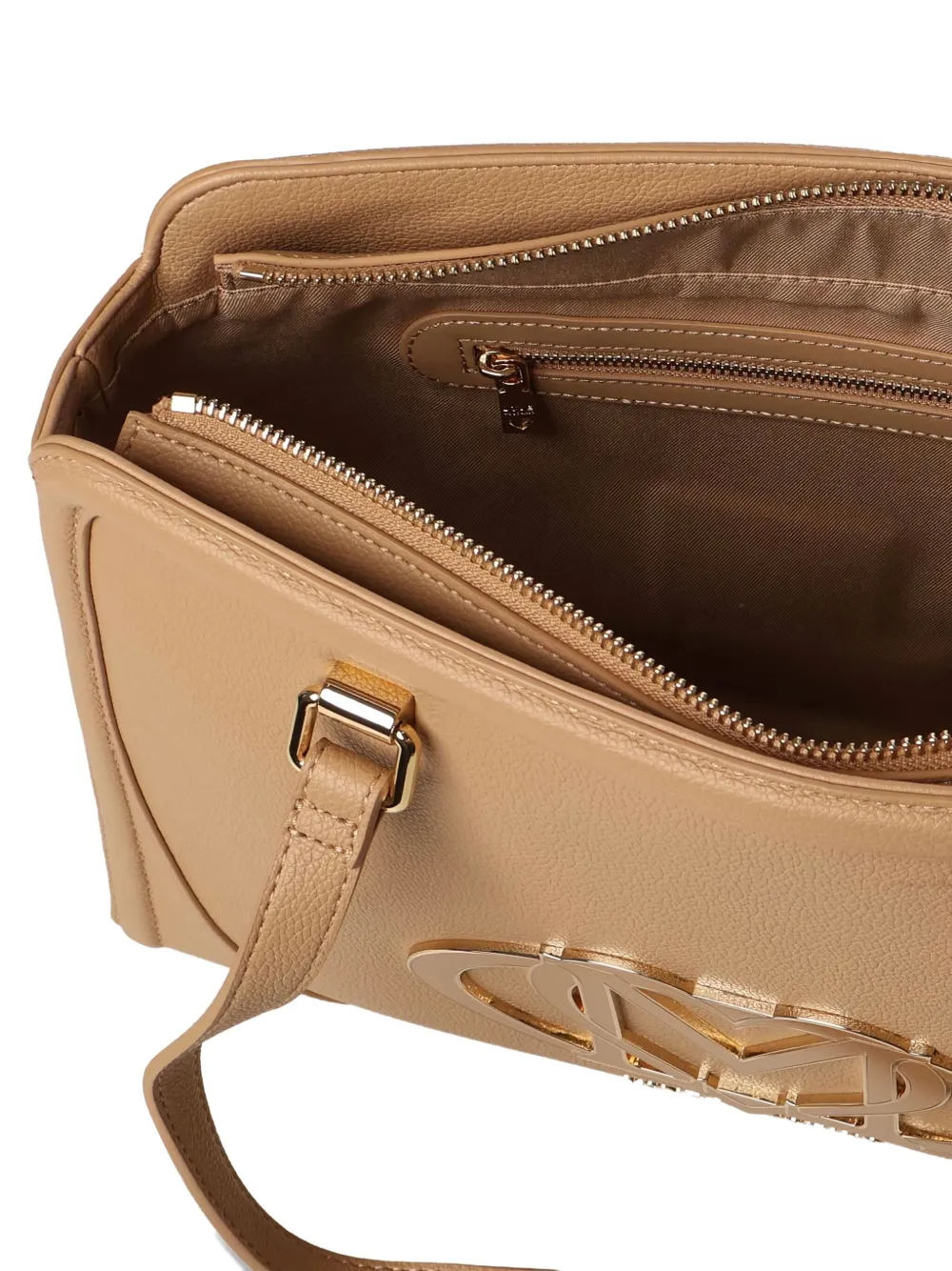 Бежевый золотистый логотип, верхние ручки, застежка-молния, структурированная форма, внутренний карман