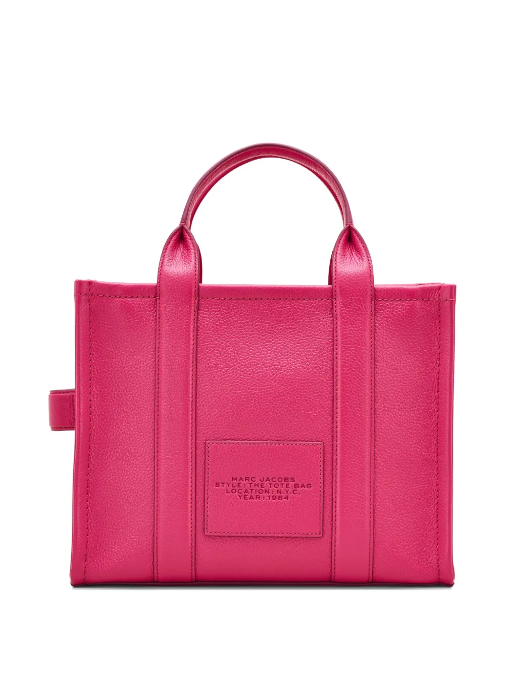 Верхние ручки из малиново-розовой кожи, съемный плечевой ремень, тисненый логотип, панельный дизайн