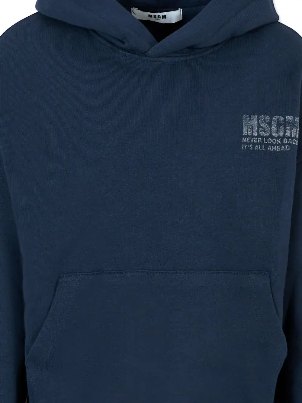 Темно-синий капюшон на шнурке, карман-кенгуру, длинные рукава, принт с логотипом