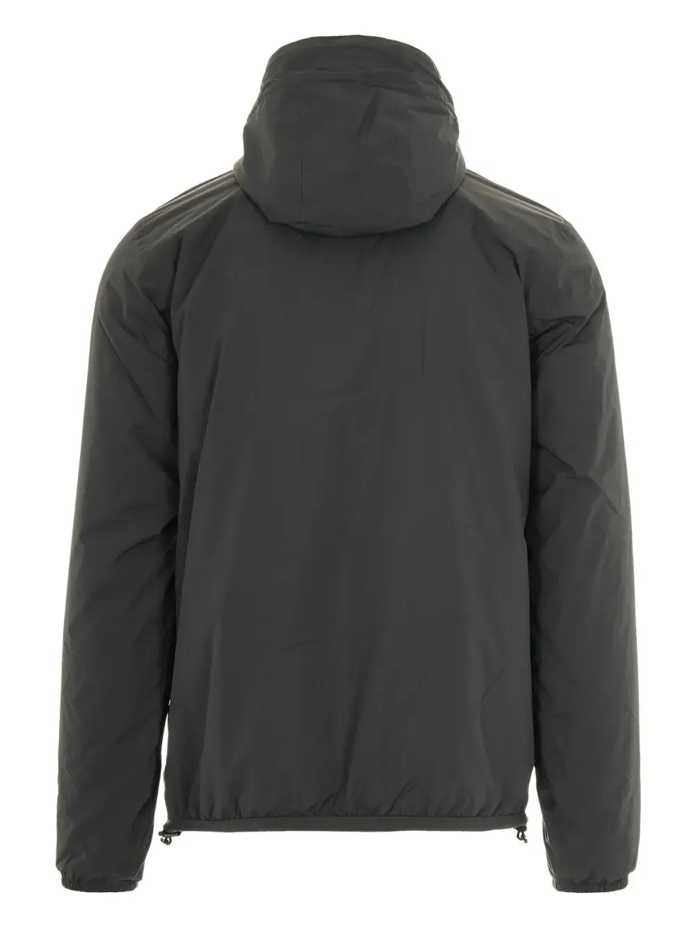 Черная застежка-молния, логотип, затягивающийся шнурок, капюшон, длинные рукава.
