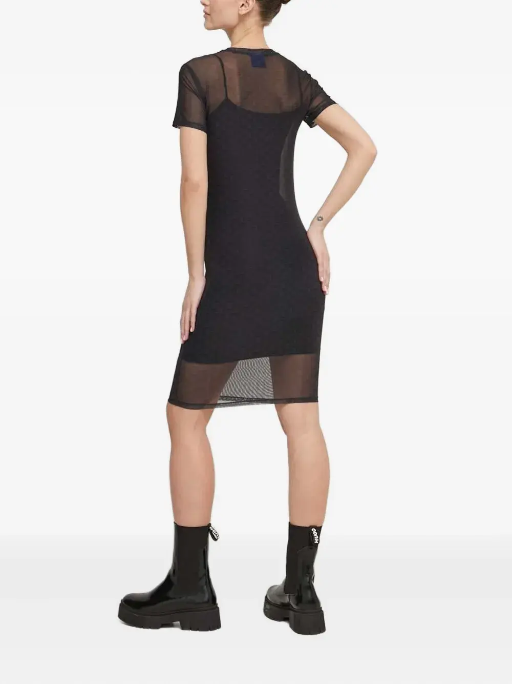 Платье-сетка с логотипом HUGO, черный