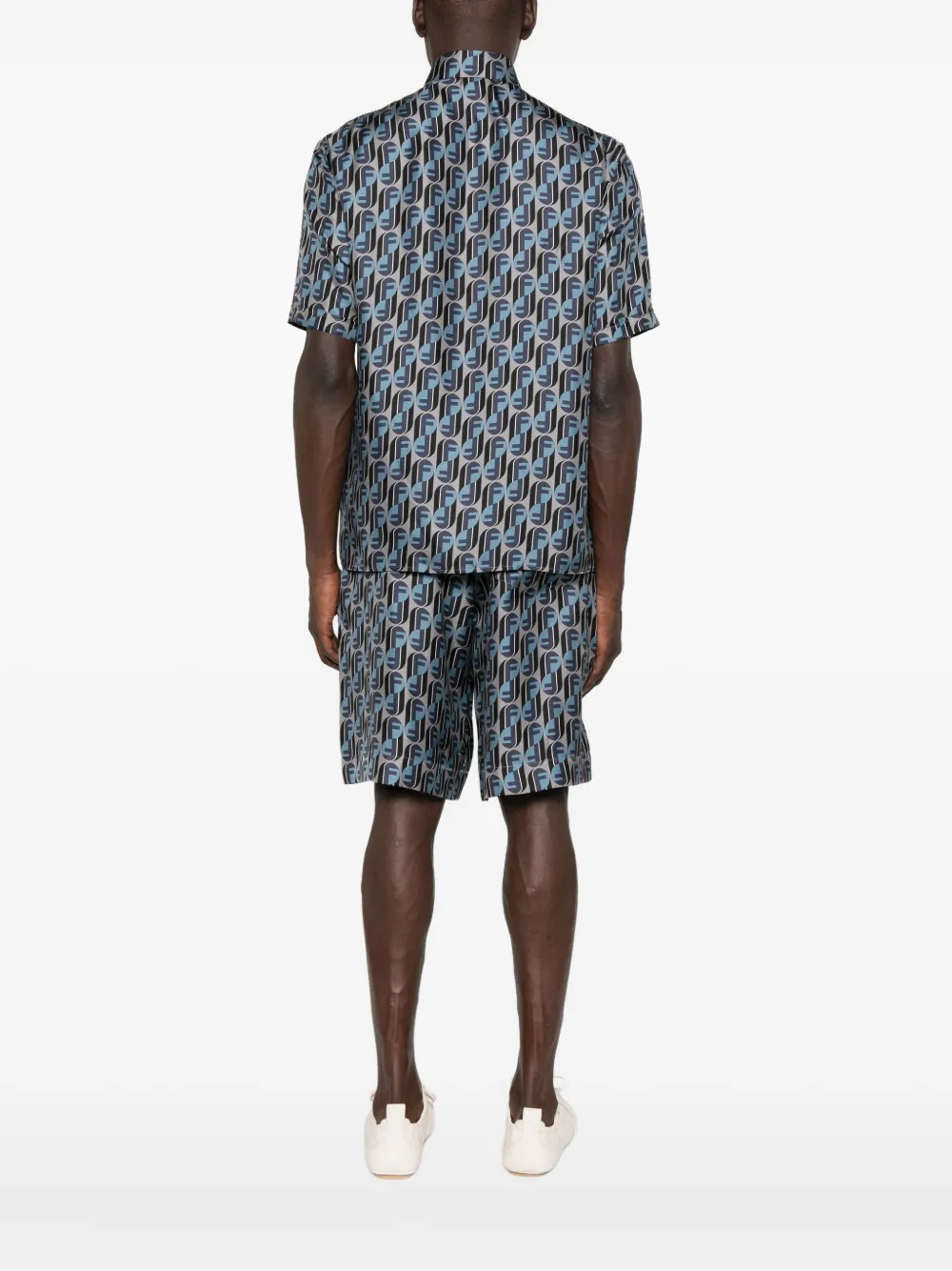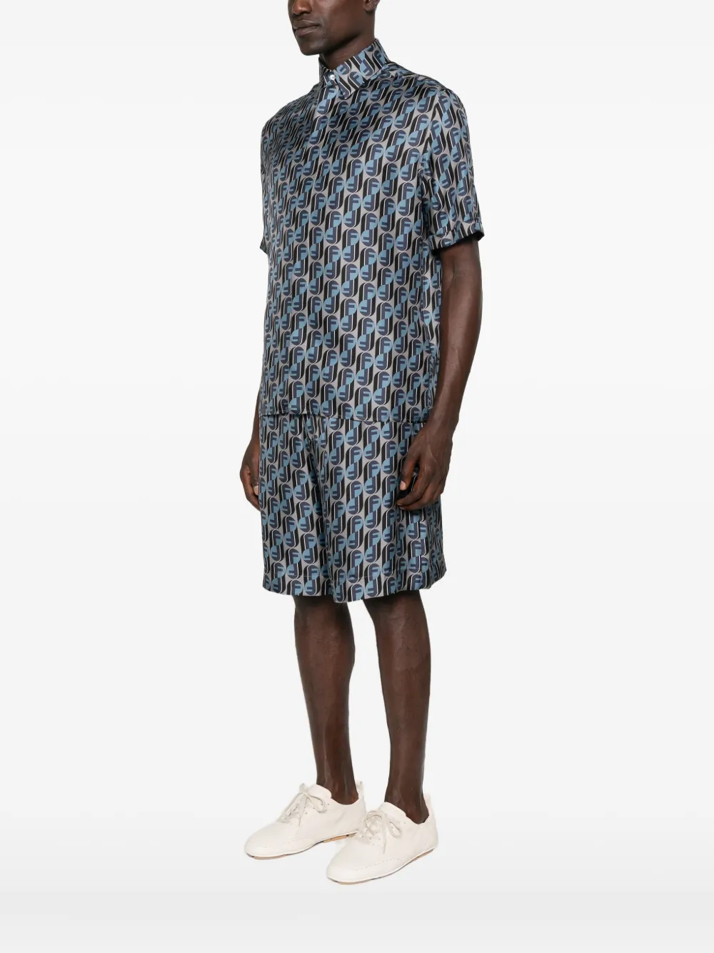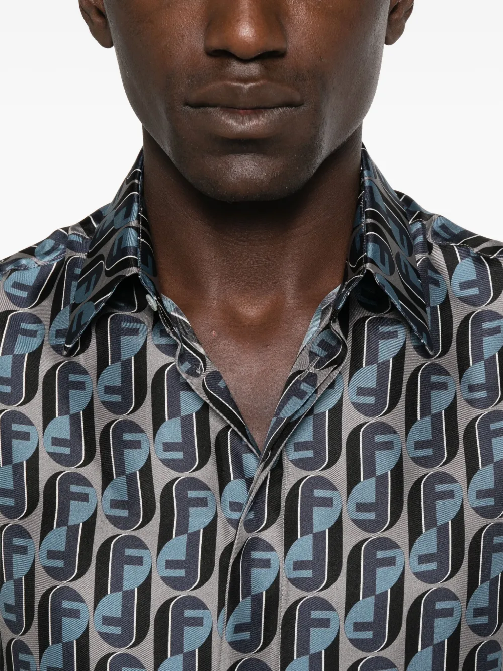 Шелковая рубашка с логотипом FENDI, серый