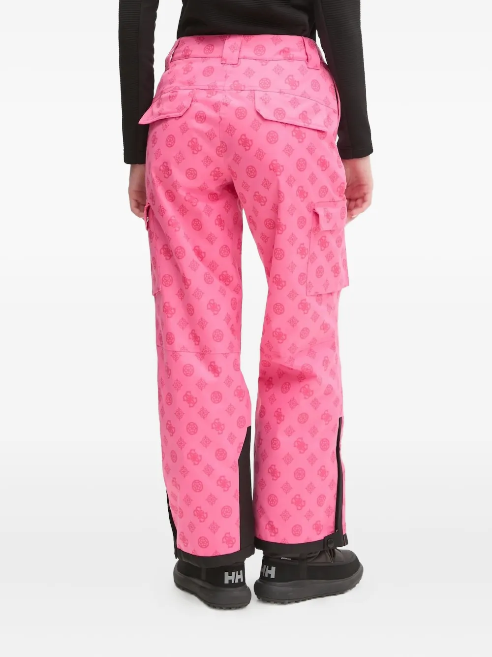 Розовый узор с монограммой и логотипом, карманы-карго с застежкой на кнопках, шлевки для ремня
