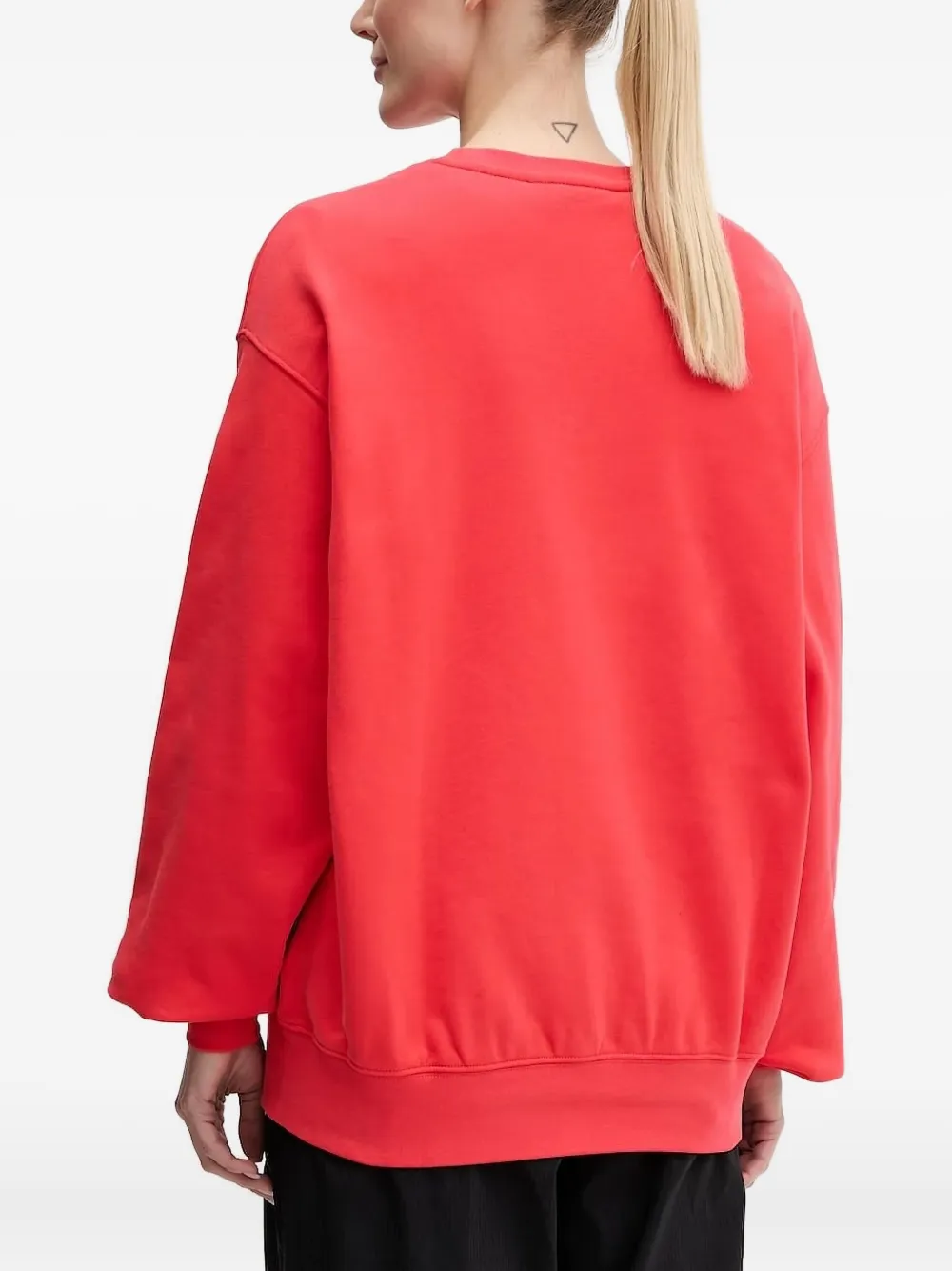 Красный круглый вырез горловины, длинные рукава, принт с логотипом, ребристый подол