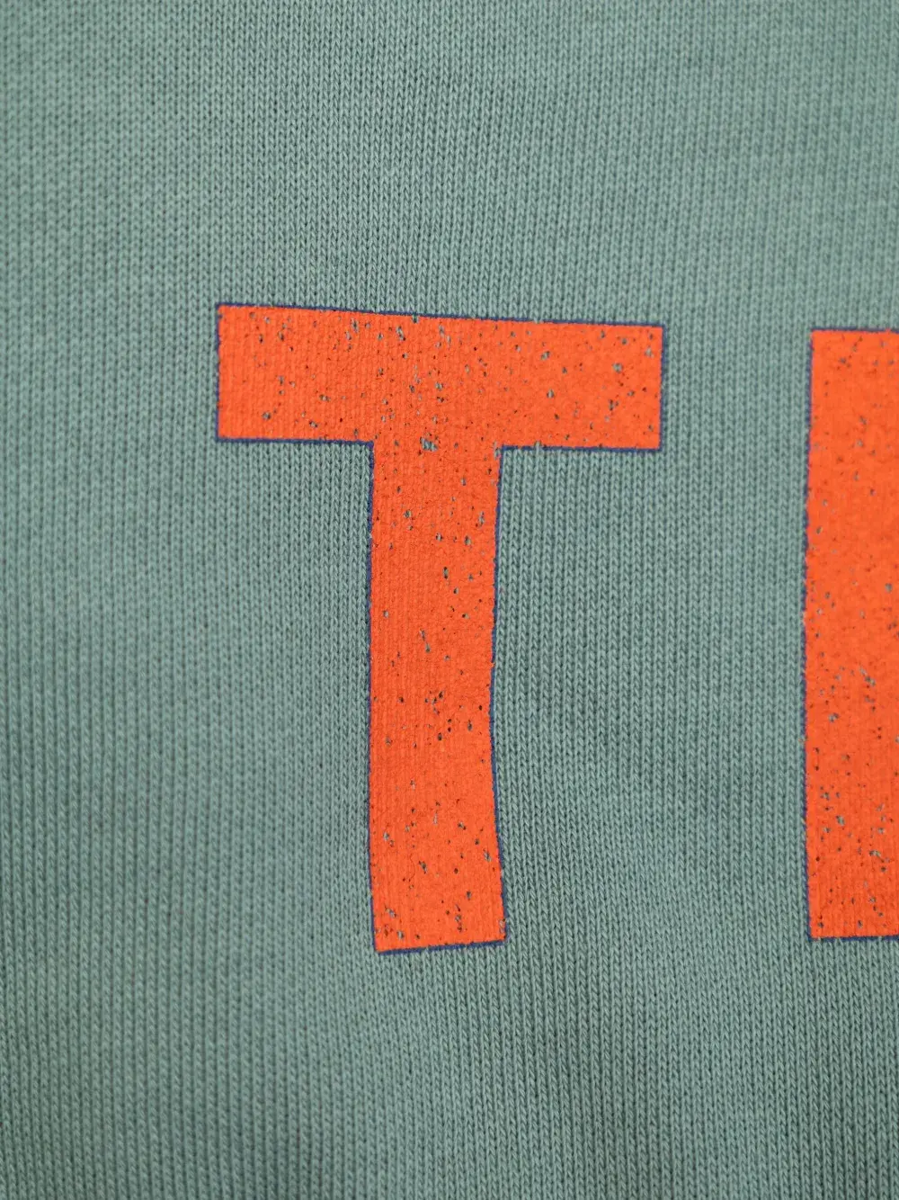Свитшот из органического хлопка бирюзового цвета с круглым вырезом, длинными рукавами и принтом логотипа «Tiny».