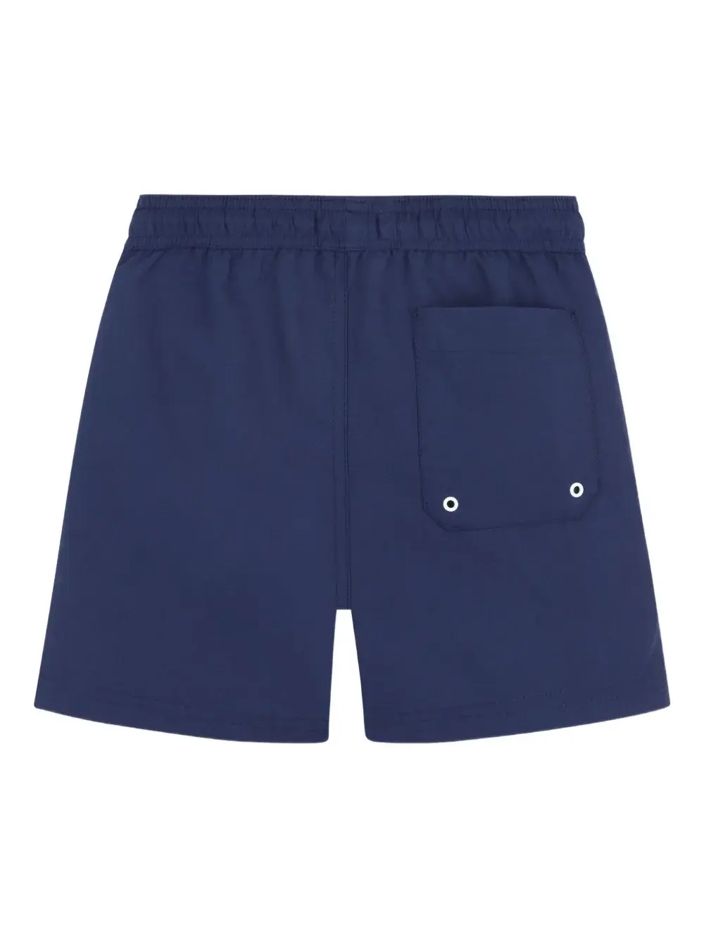 Эластичный пояс темно-синего цвета, затягивающийся шнурок, задний карман, принт с логотипом. Обязательно примеряйте купальники поверх своей одежды.