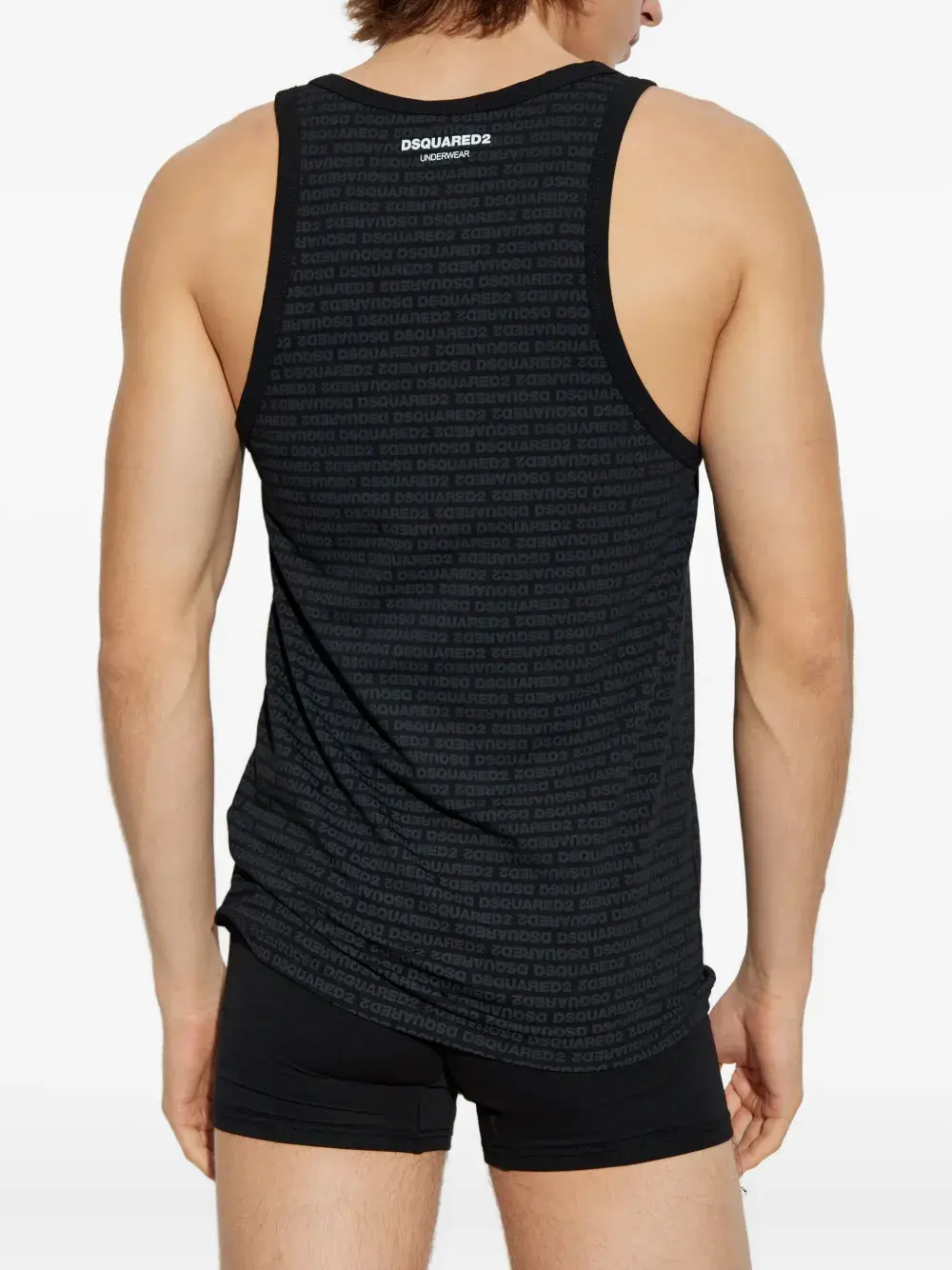 Черный хлопковый топ с принтом логотипа по всей поверхности, круглым вырезом, без рукавов