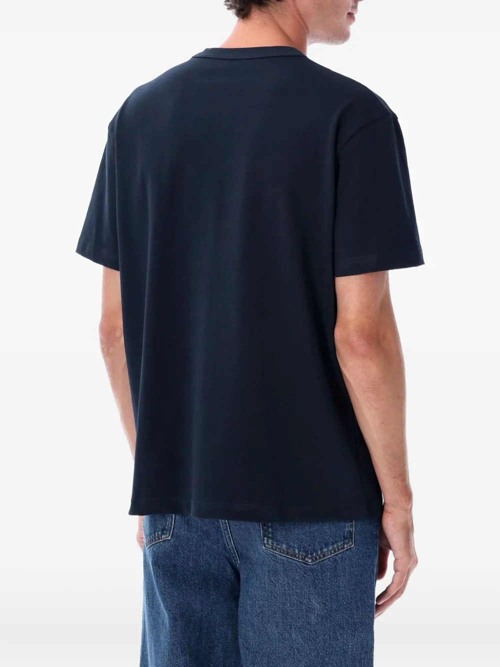Темно-синяя футболка с короткими рукавами и круглым вырезом, с логотипом и принтом