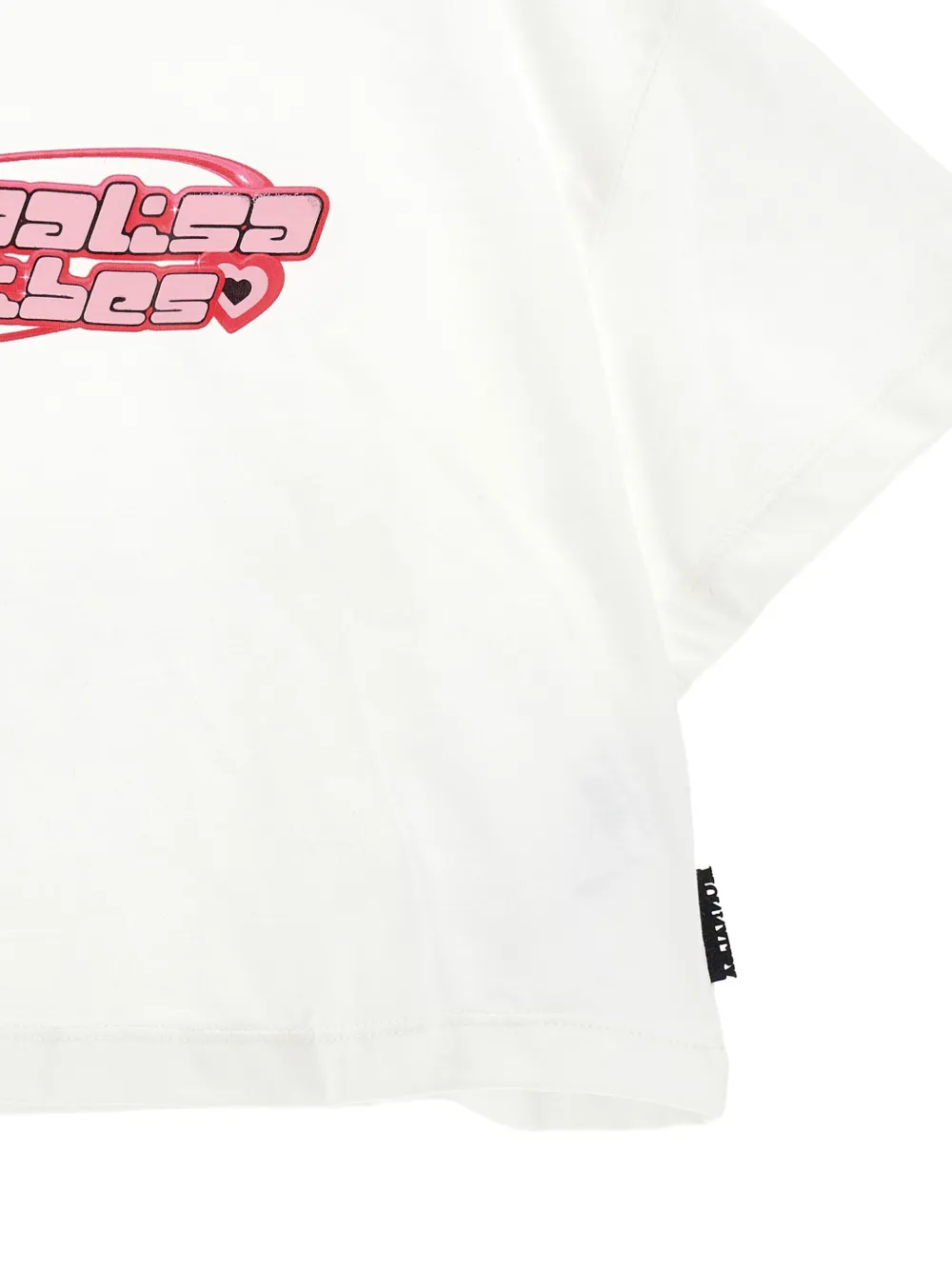 Белый с короткими рукавами и графическим принтом, органический хлопок, круглый вырез горловины