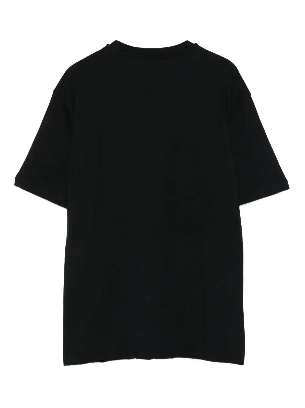 Черный хлопковый принт с короткими рукавами и круглым вырезом.