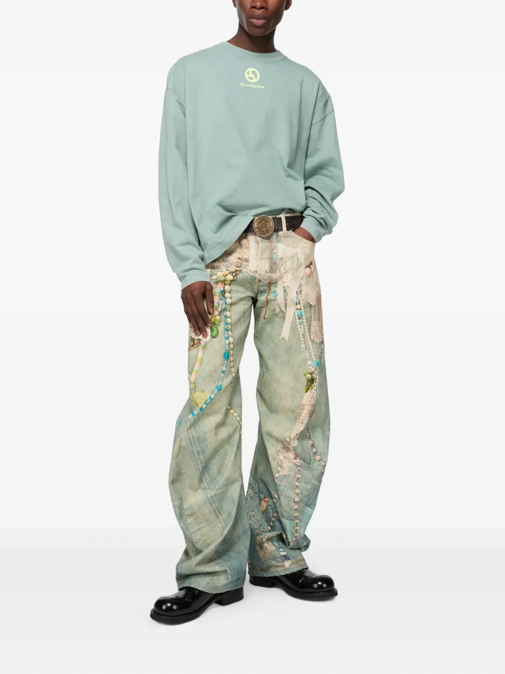 Футболка с длинными рукавами и логотипом Acne Studios, зеленый