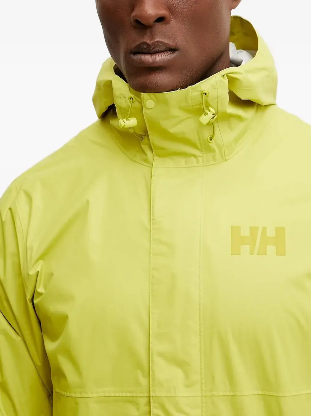 Желтый пришитый капюшон с застежкой-молнией, прорезные карманы, внутренний карман, логотип.