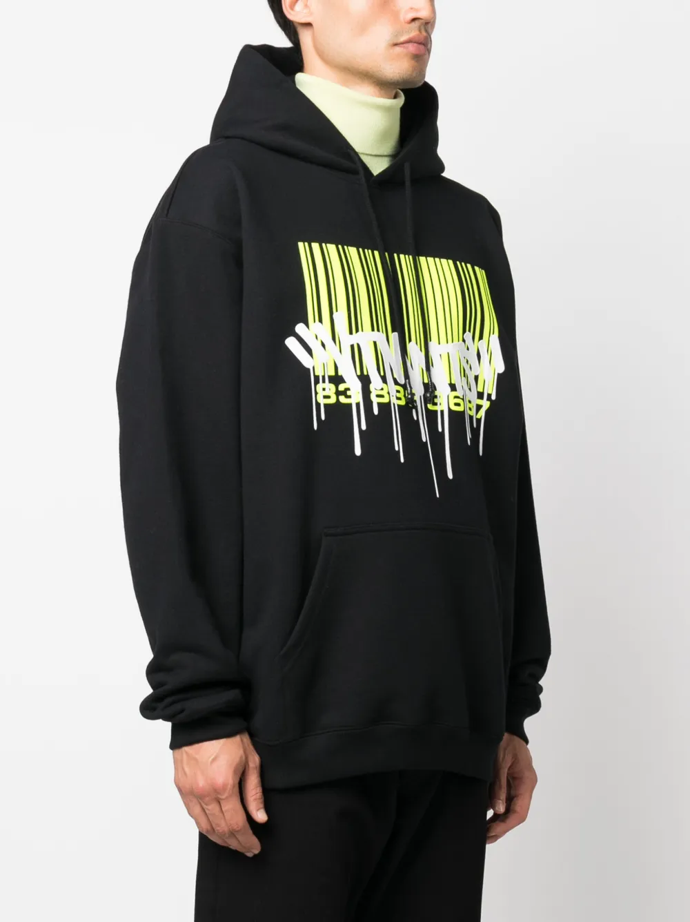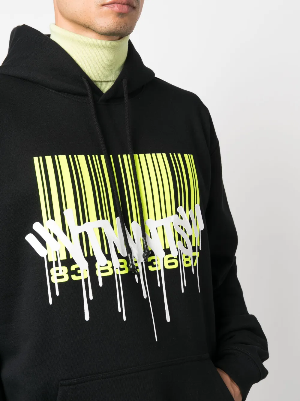 Подробнее о товаре: • черный/белый/флуоресцентный желтый • смесовый хлопок • ткань джерси • принт с изображением штрихкода и логотип спереди • затягивающийся на шнурок капюшон • приспущенные плечи • длинные рукава • подол и манжеты в рубчик • накладной карман спереди • прямой подол • Это унисекс-модель. Обратите внимание, что для нее используется мужская размерная сетка.