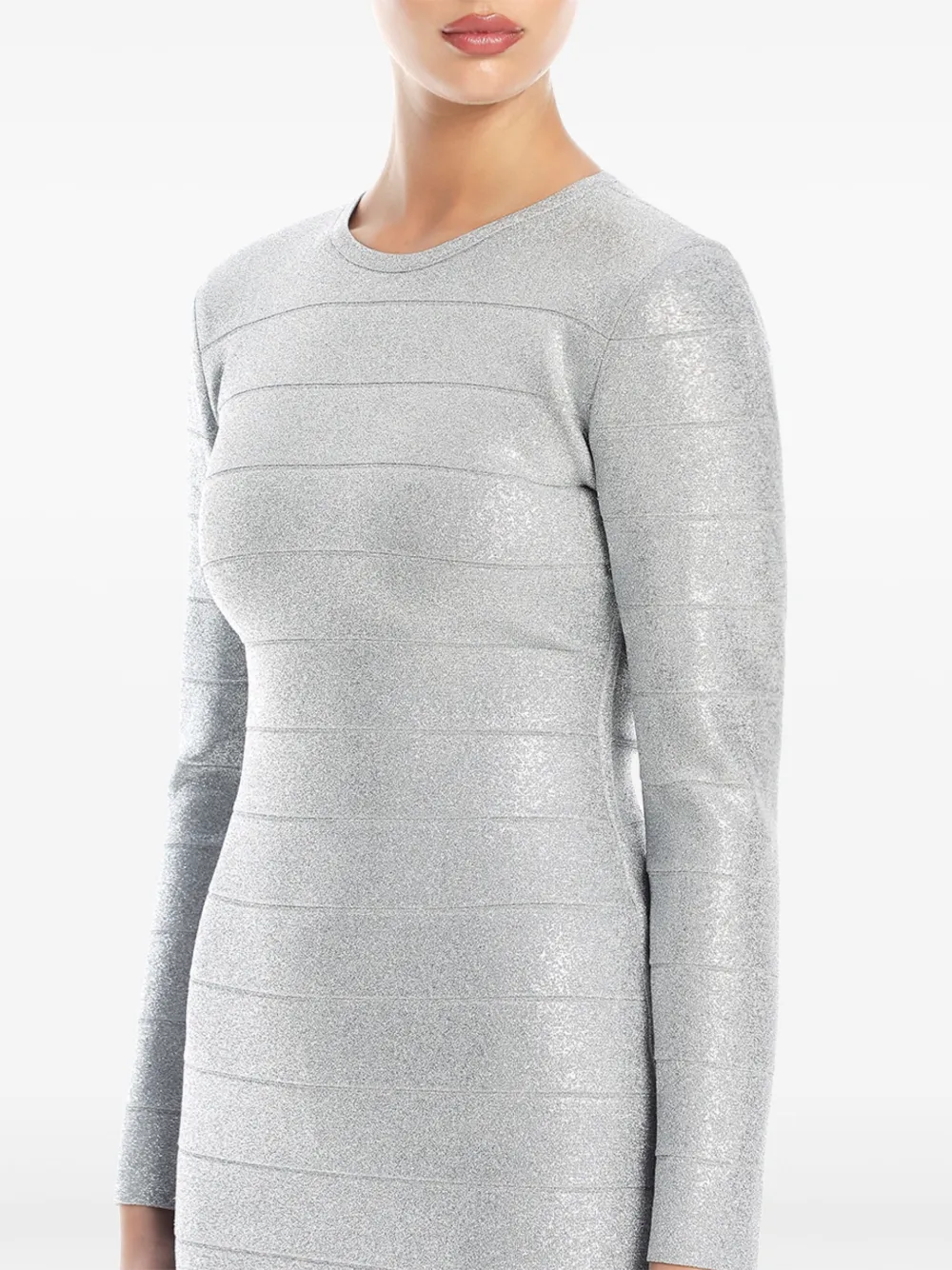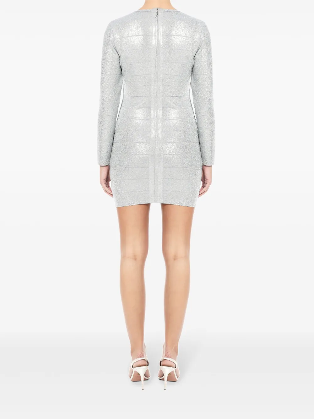 Платье мини с длинными рукавами и эффектом металлик Hervé Léger, серебряный