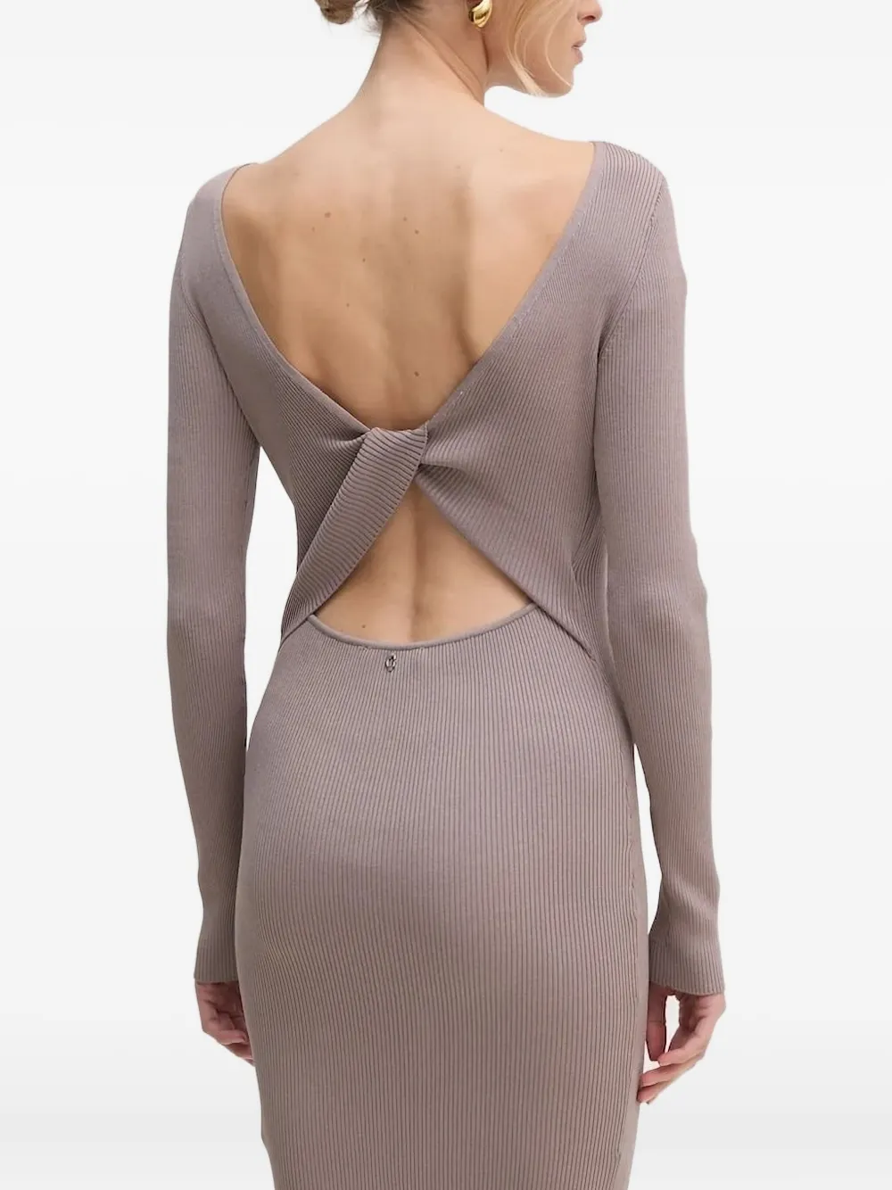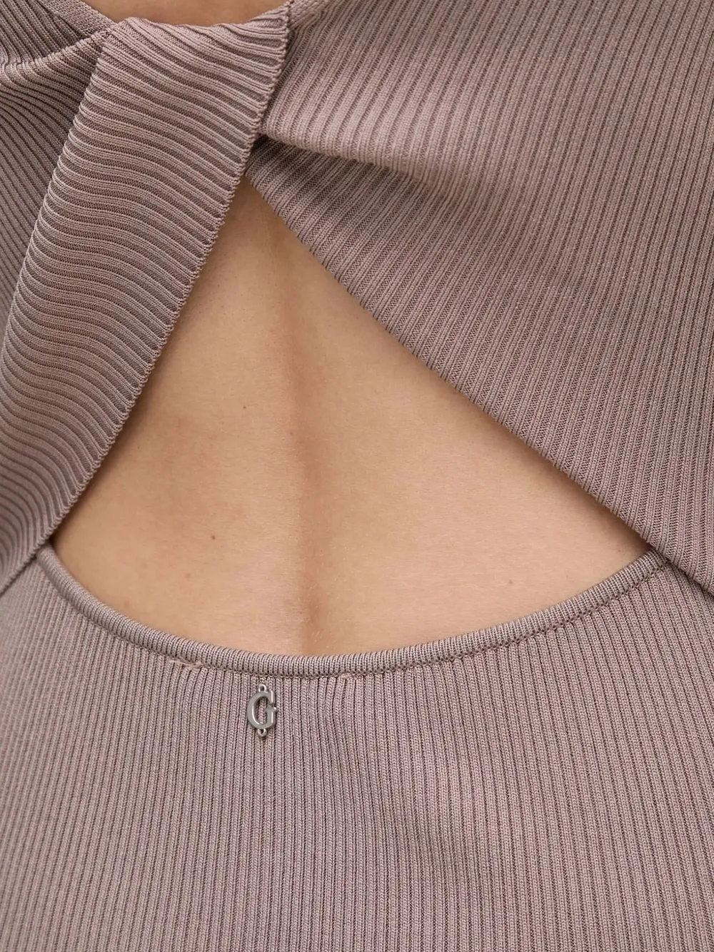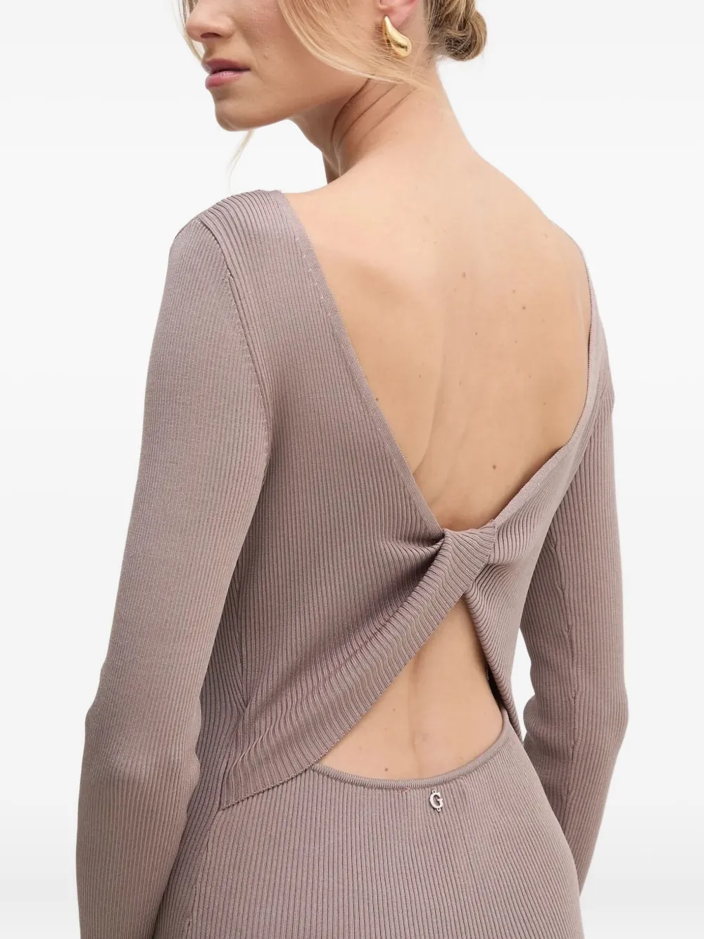 Серо-коричневый трикотаж с длинными рукавами и открытой спиной