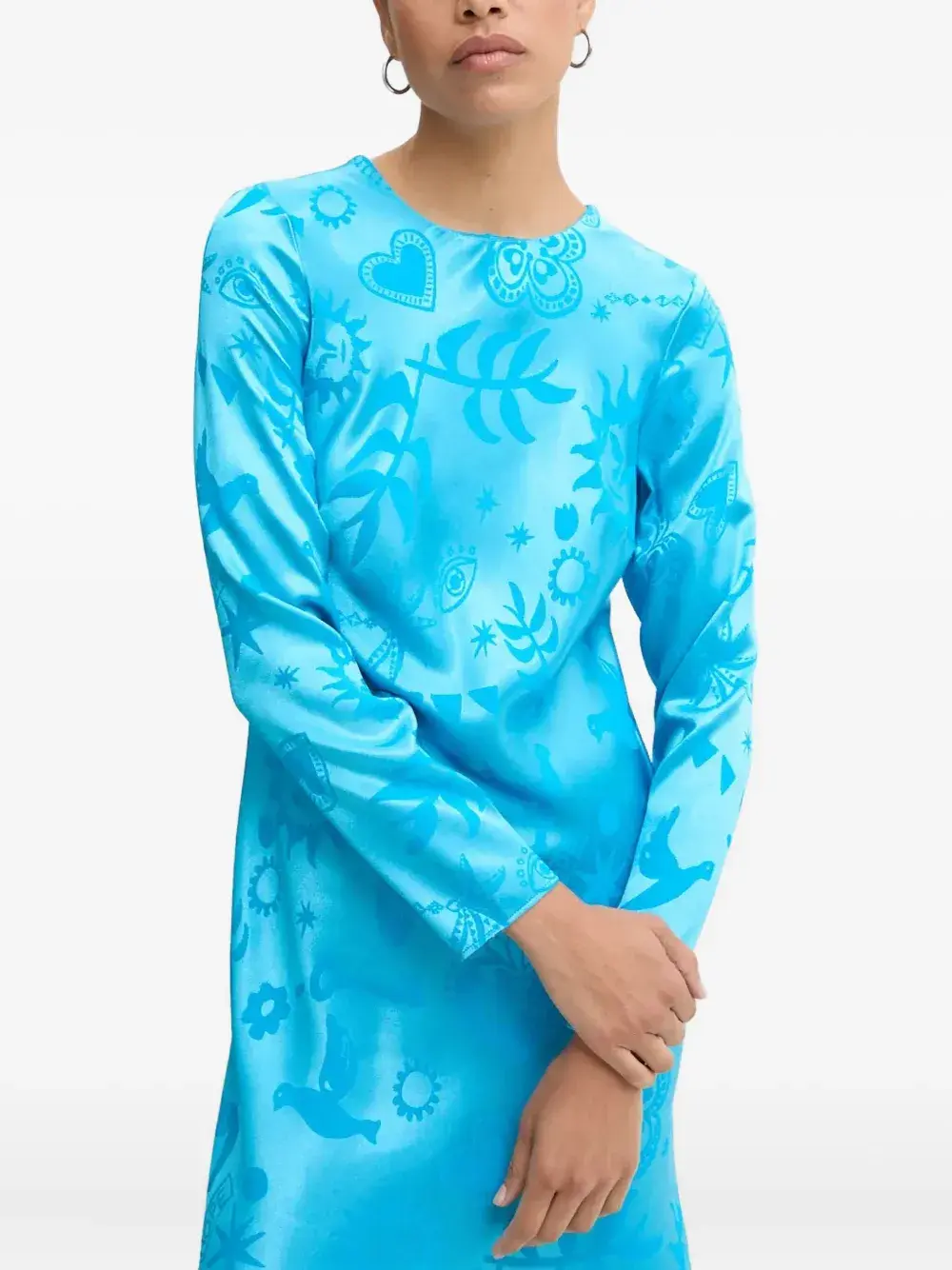 Платье с длинными рукавами и принтом NEVER FULLY DRESSED, синий