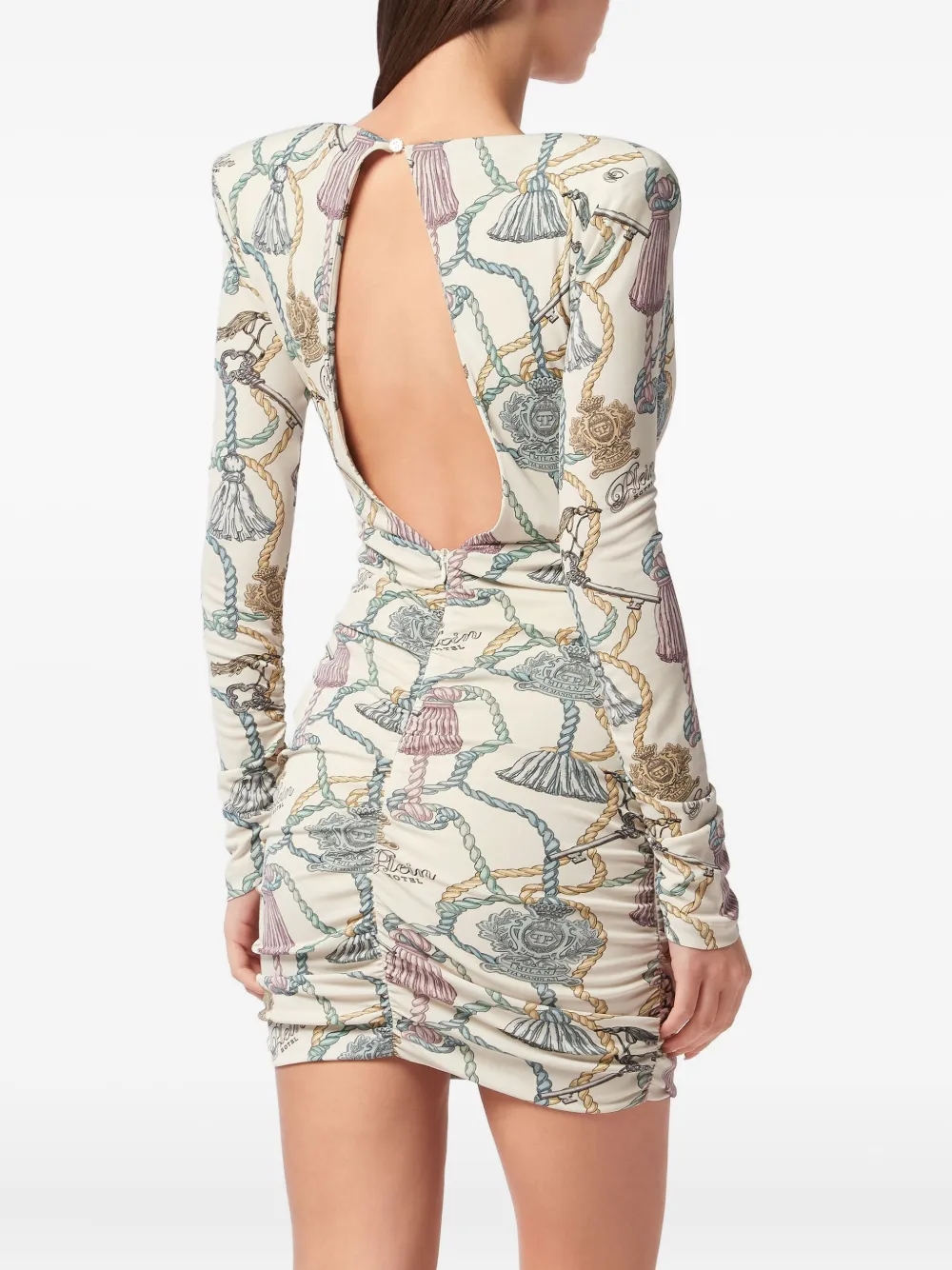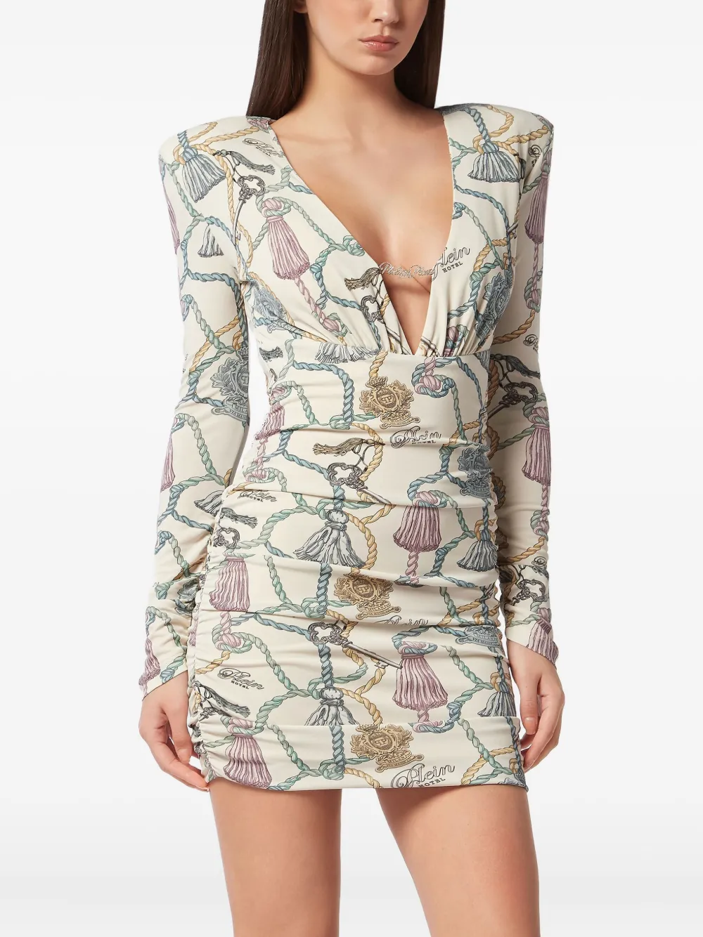 Платье мини с длинными рукавами и принтом Philipp Plein, нейтральный 71 997₽
