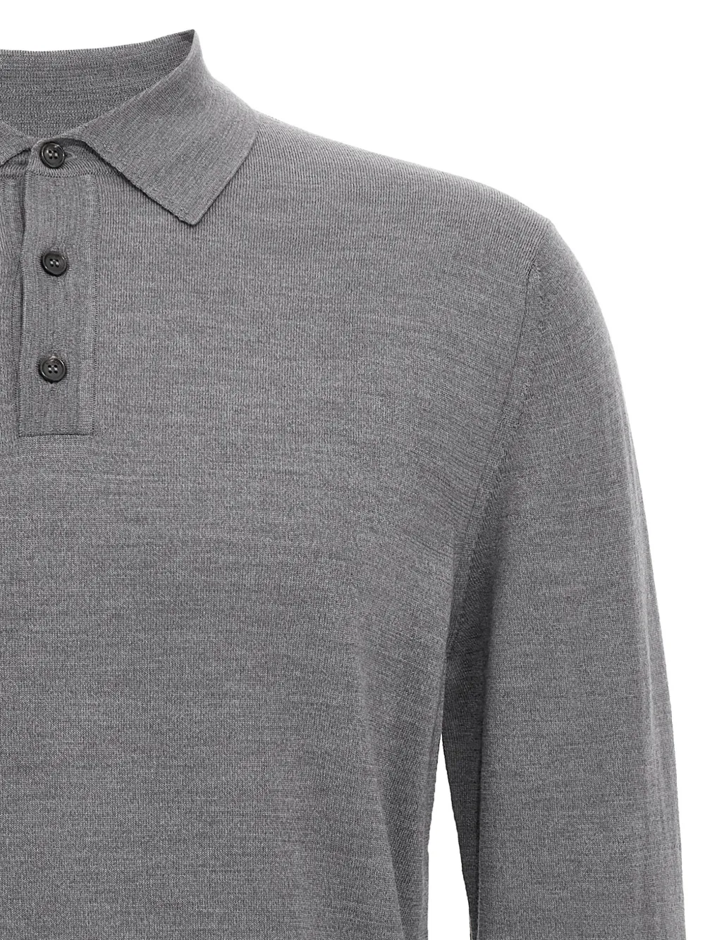 Серый кашемировый шелковый микс, застежка на пуговицы, длинные рукава с манжетами, воротник-поло
