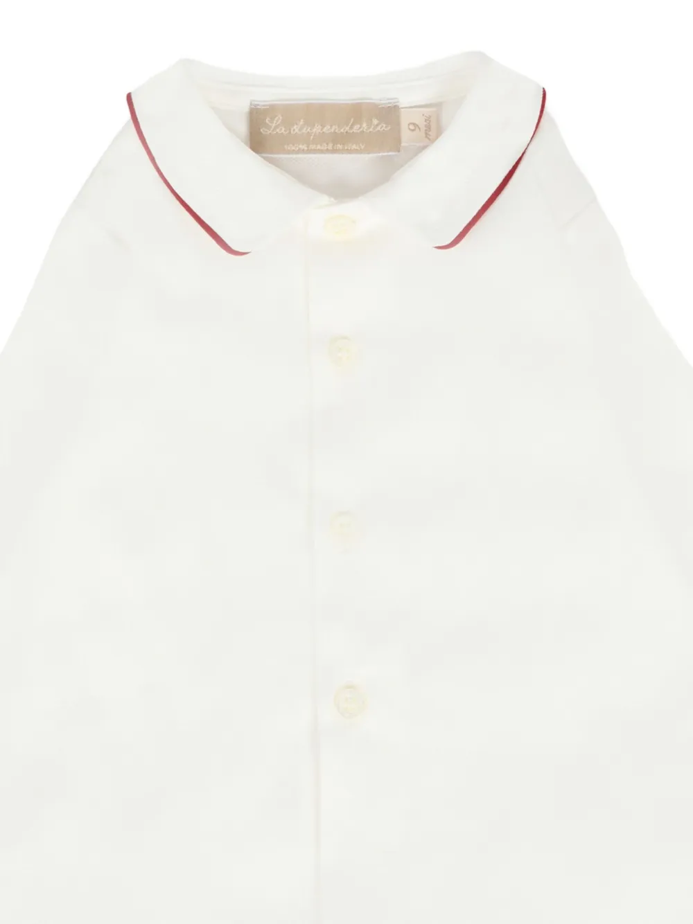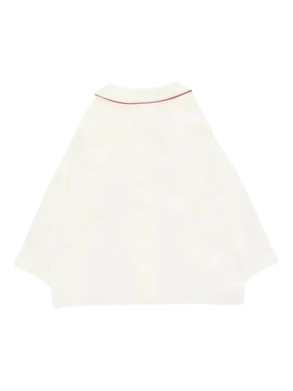 Белый воротник-поло, застежка на пуговицы, длинные рукава, красная отделка, хлопок