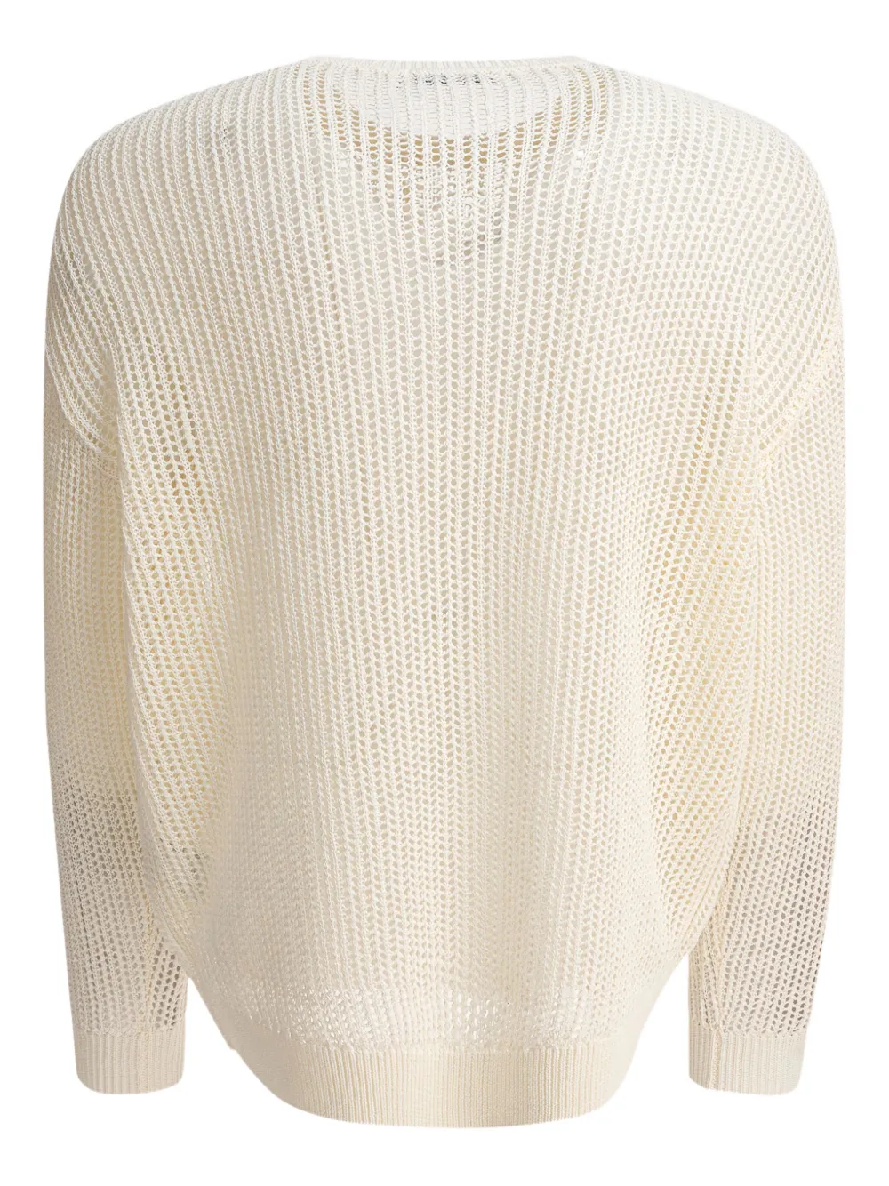 Белый сетчатый трикотаж, круглый вырез, длинные рукава, ребристые манжеты.