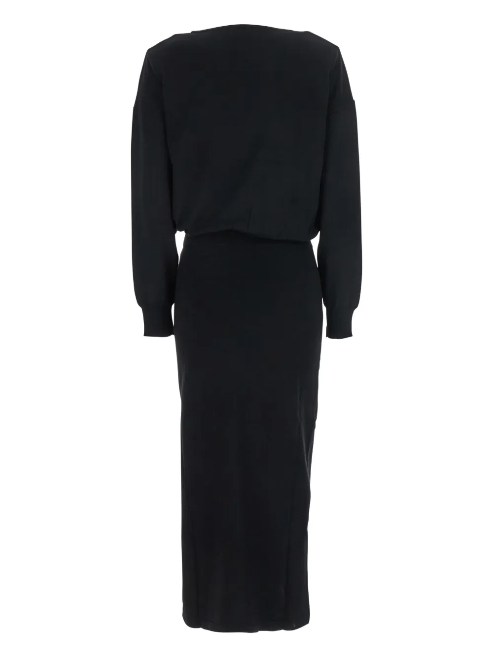 Черная шерстяно-кашемировая смесь, длинные рукава, разрезы по бокам