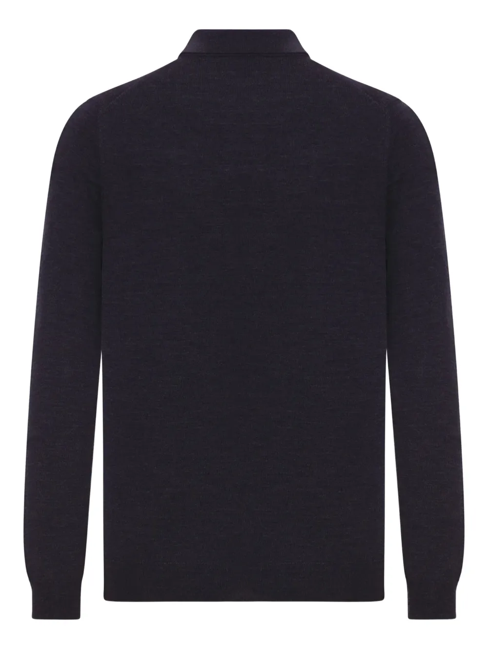 Черная рубашка поло с длинными рукавами, воротником-поло, застежкой на пуговицы, прямым подолом.