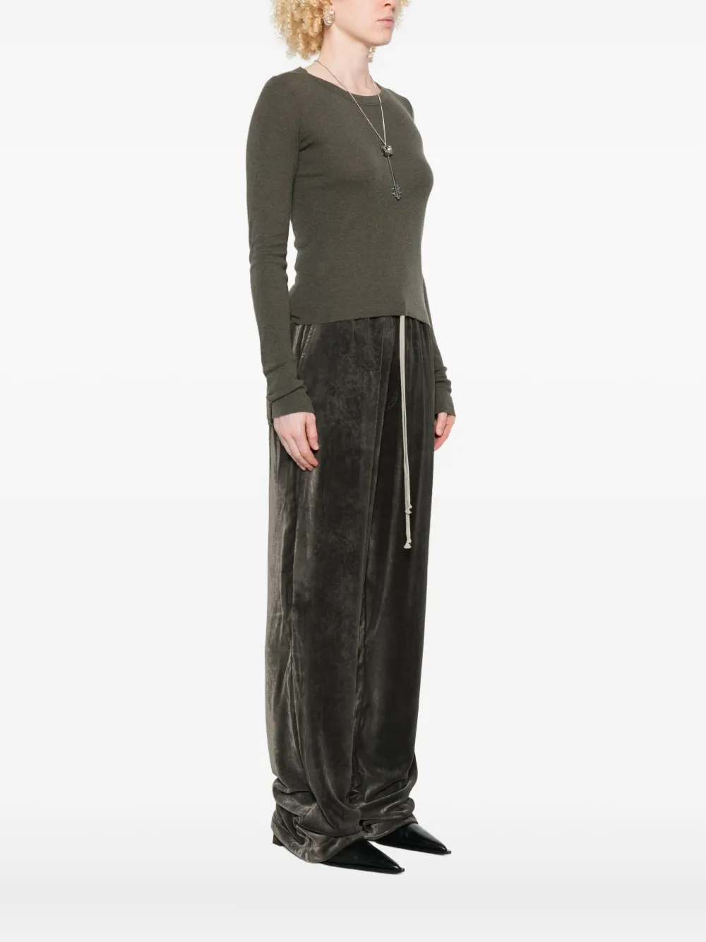 Ребристый топ с длинными рукавами Rick Owens, зеленый 21 348₽