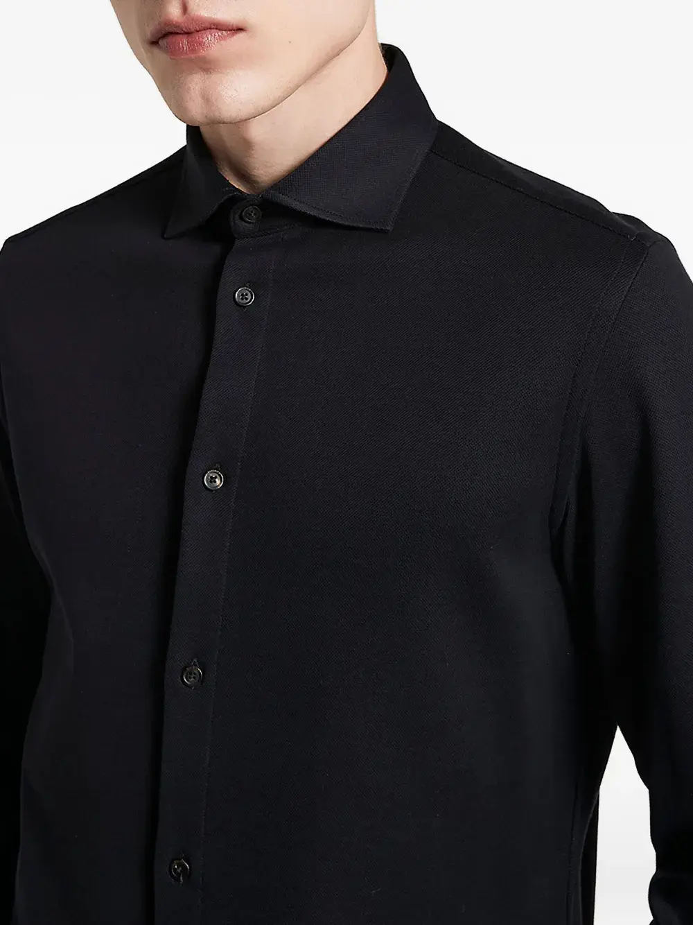 Черные длинные рукава, застежка на пуговицы, воротник-стойка
