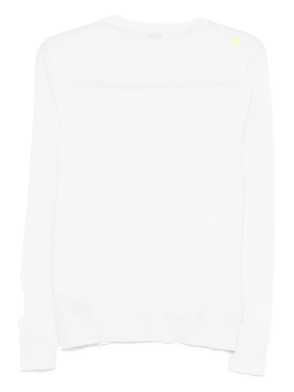 Белый кашемирово-шелковый микс, длинные рукава, круглый вырез, прямой подол.