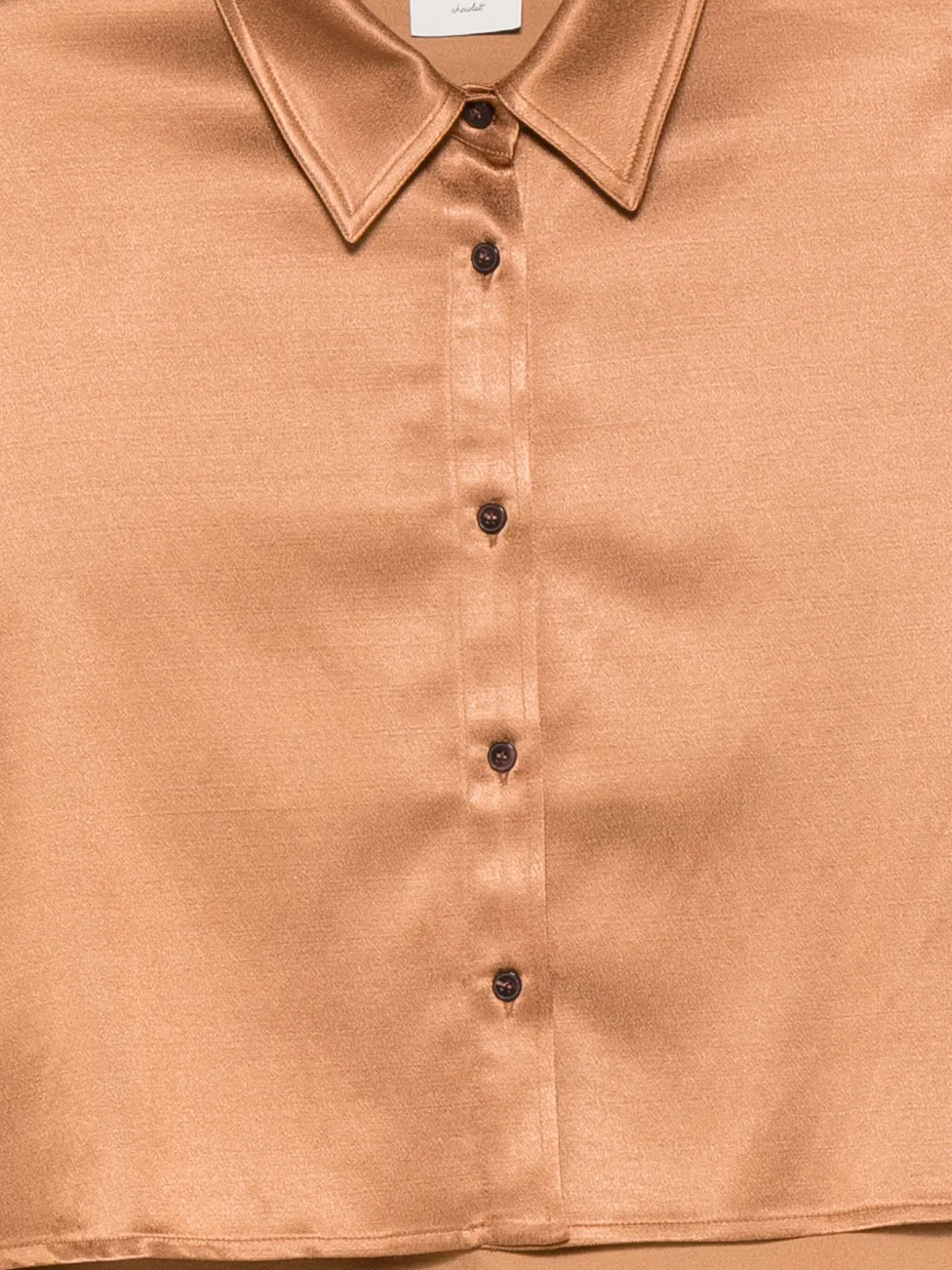 Застежка на пуговицы спереди цвета корицы, длинные рукава, укороченный подол.