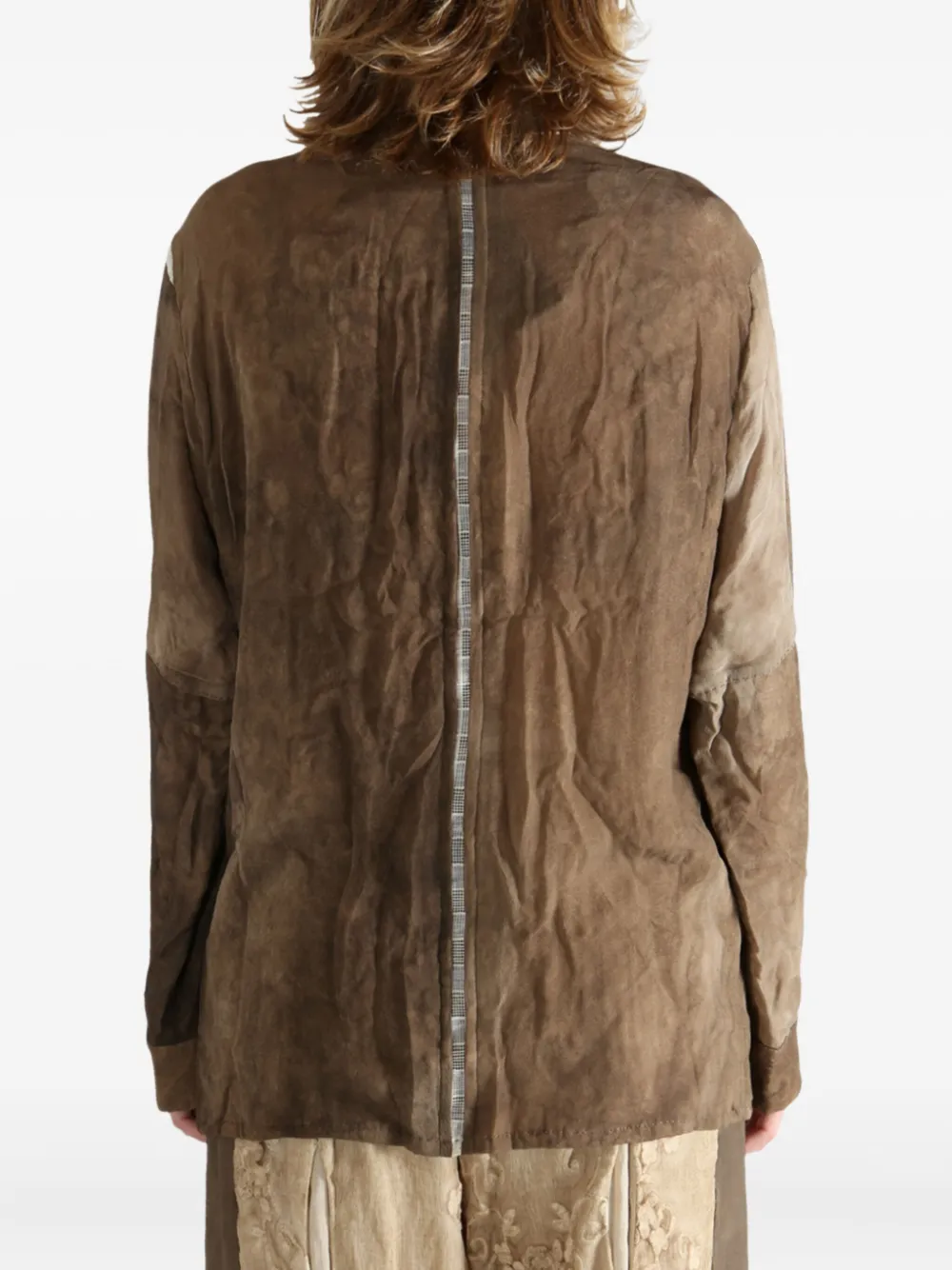 Коричневый шелковый смесовый длинный рукав, застежка на пуговицы
