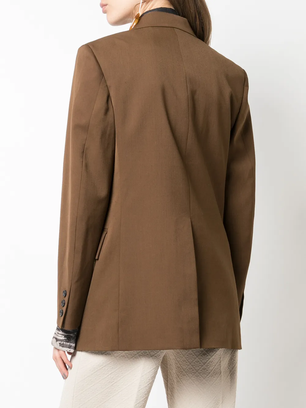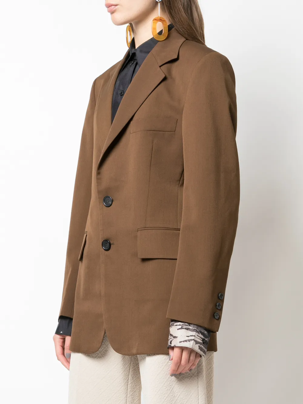 Блейзер свободного кроя от Kwaidan Editions. Застежка на пуговицах спереди, карманы с клапанами сбоку, зазубренные лацканы и нагрудный карман. Цвет: коричневый. POSITIVELY CONSCIOUS: Мы объединились с агентством Good On You, которое составляет рейтинг ответственных брендов. Этот бренд получил отметку «Ответственный выбор», потому что отвечает ключевым стандартам агентства.