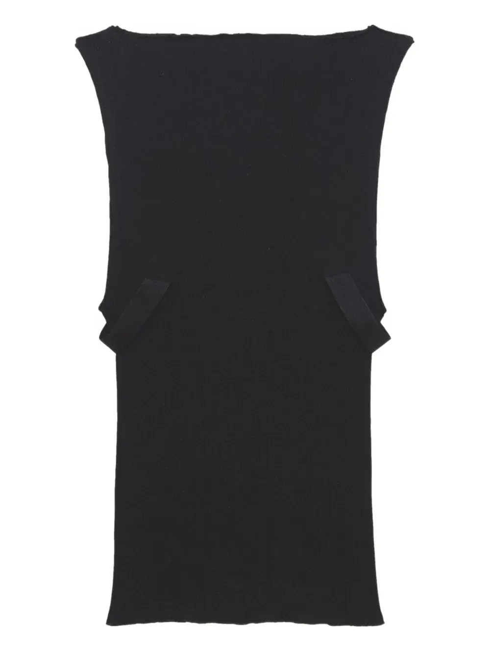 Черная безрукавка с оборкой, круглым вырезом и подвернутым подолом