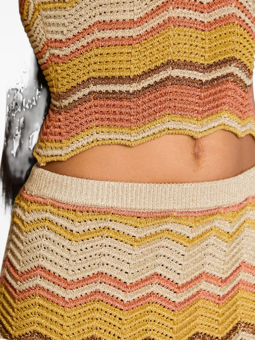 Жёлтый шевронный узор, связанный крючком без рукавов