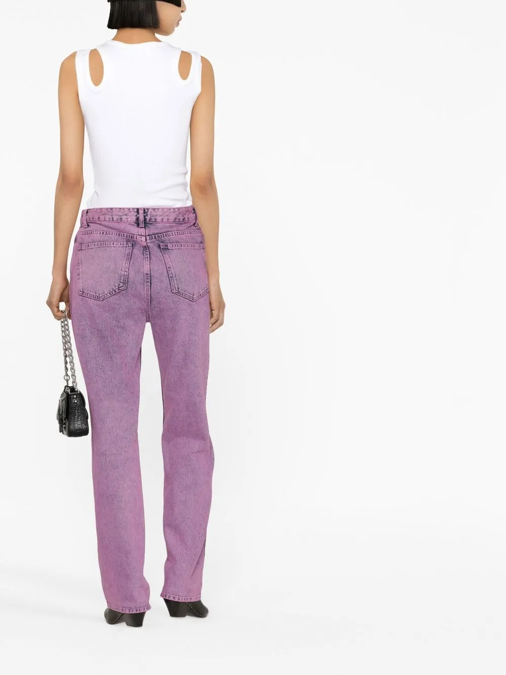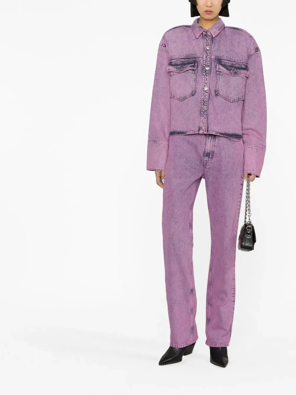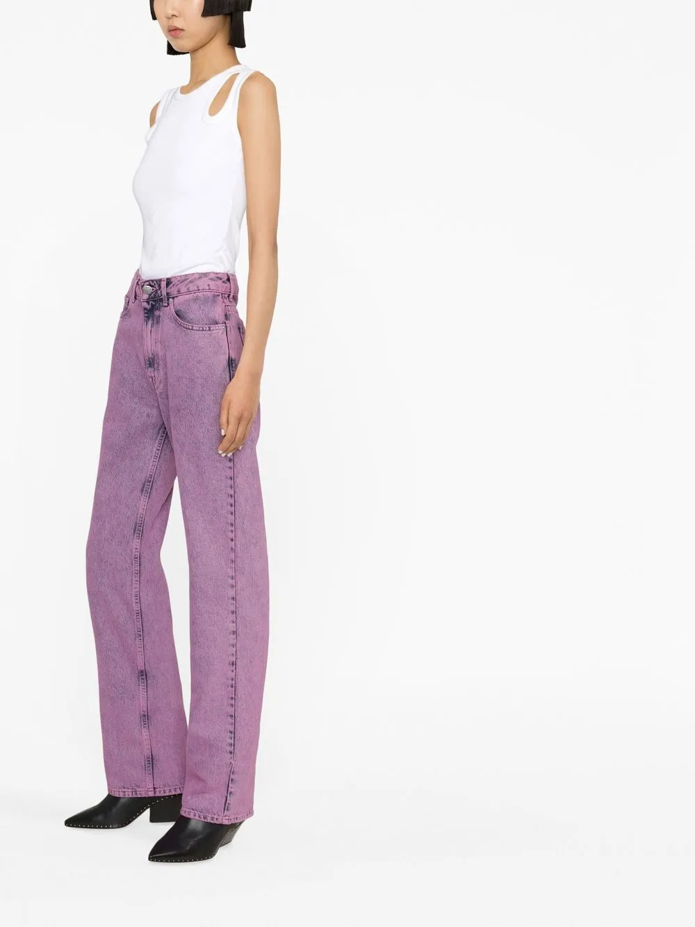Фиолетовый, органический хлопок, эффект кислотной стирки, петли для ремня, застежка на молнии и пуговице спереди, пять карманов и прямой крой. Ответственный выбор: Этот товар как минимум на 50% состоит из органических материалов.