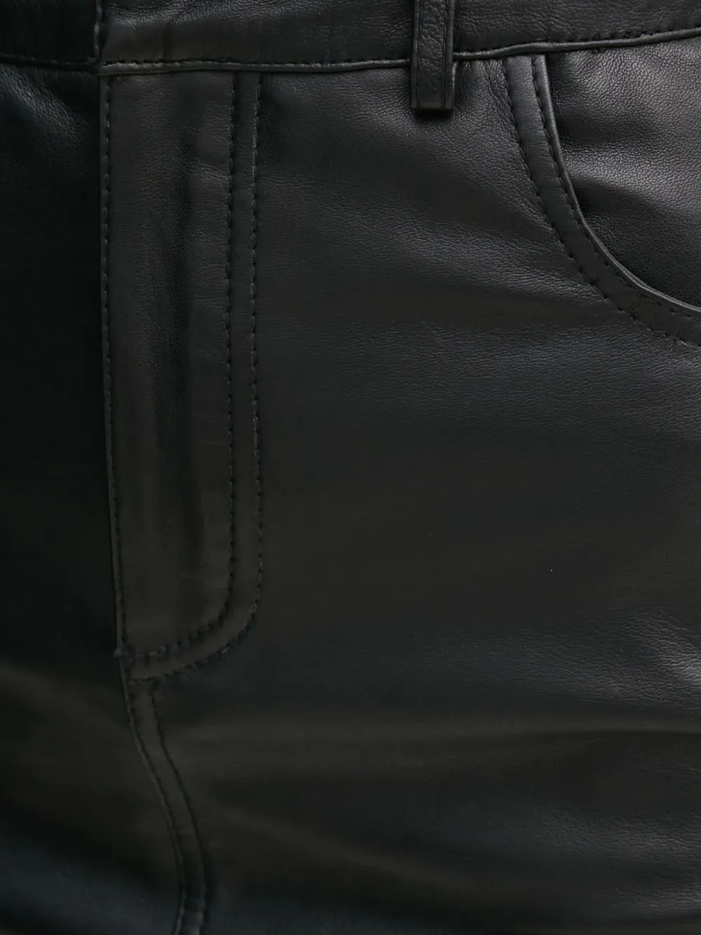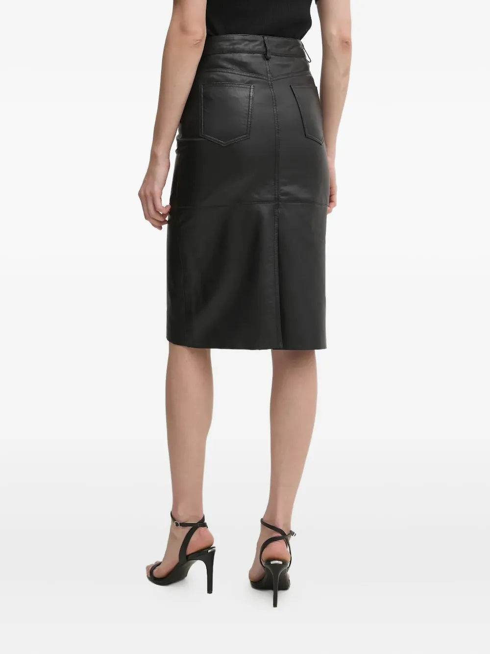 Черная кожаная модель А-силуэта с потайной застежкой-молнией