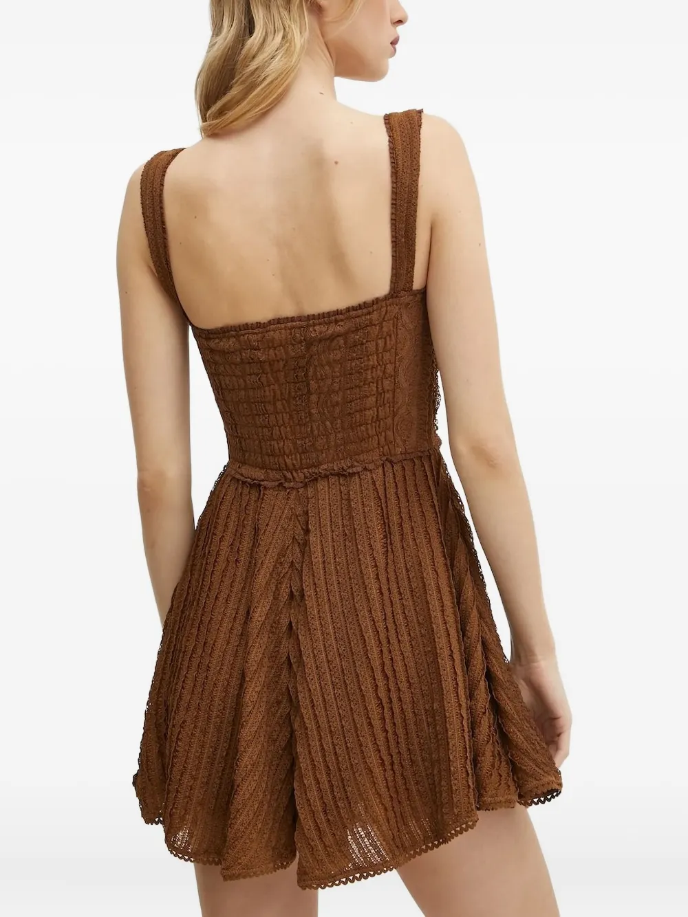 Коричневый квадратный вырез, кружевная вставка, лиф, плиссированная юбка, без рукавов, приталенный лиф