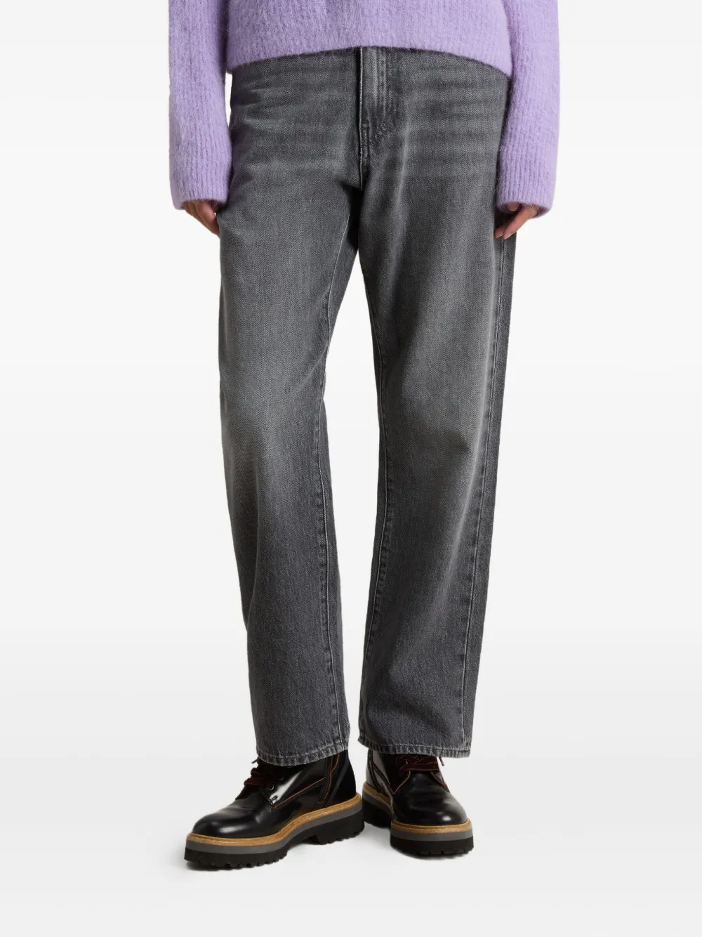 Верх из черной кожи, шнуровка, подошва на платформе, застежка-молния сбоку, круглый носок.
